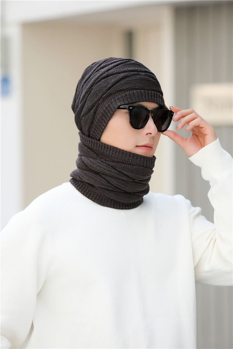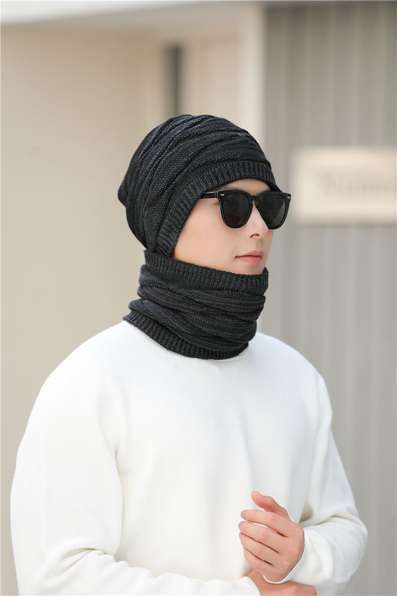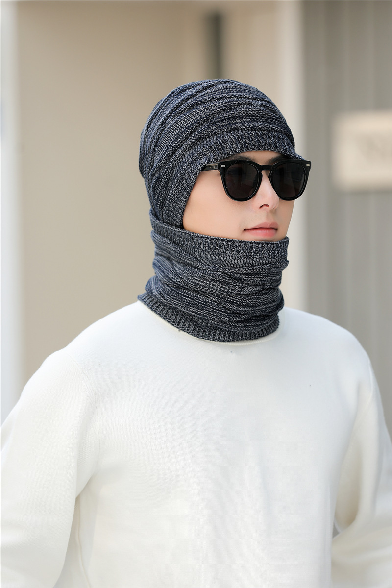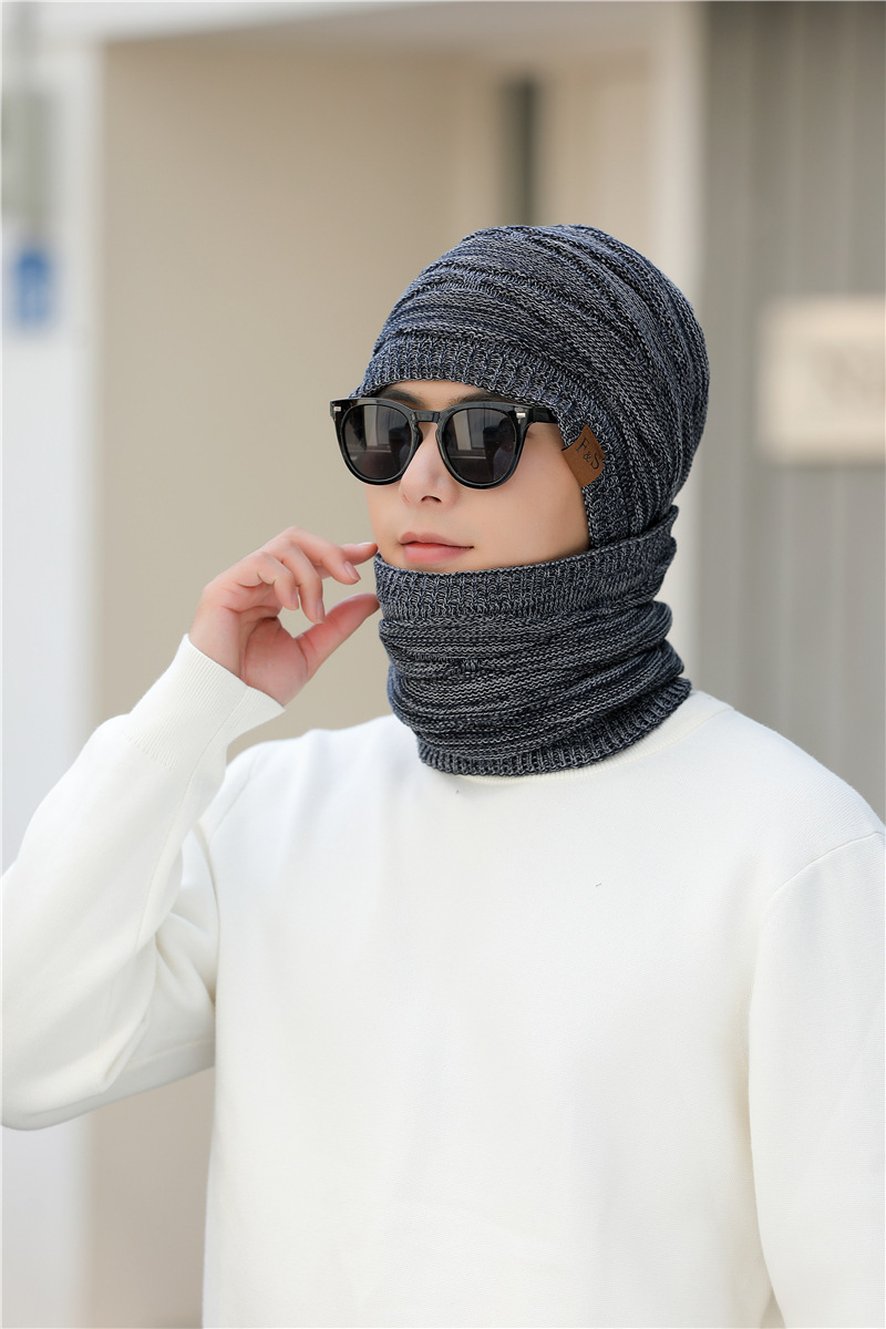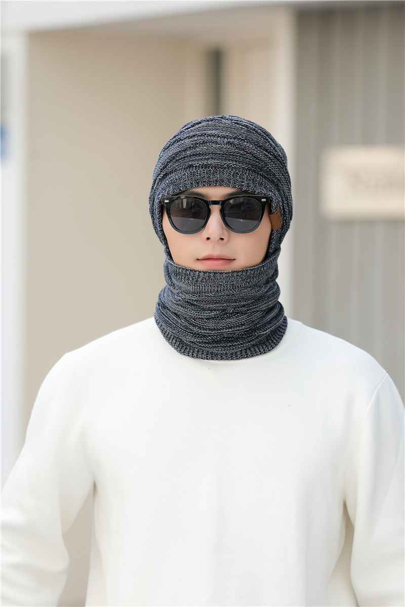户外运动冬季男士防寒围脖加绒毛线帽保暖围巾帽加厚骑行头套套装