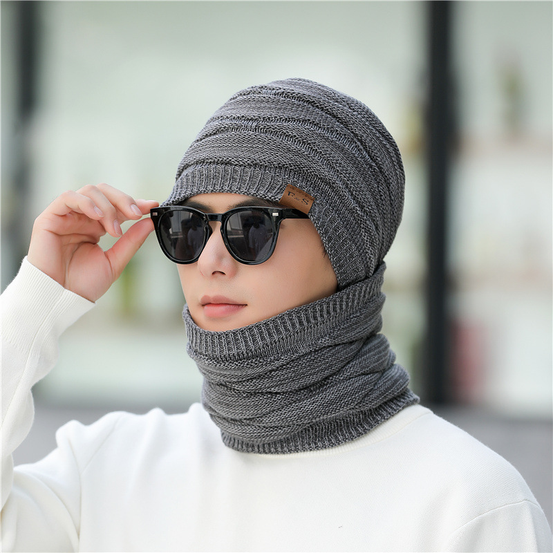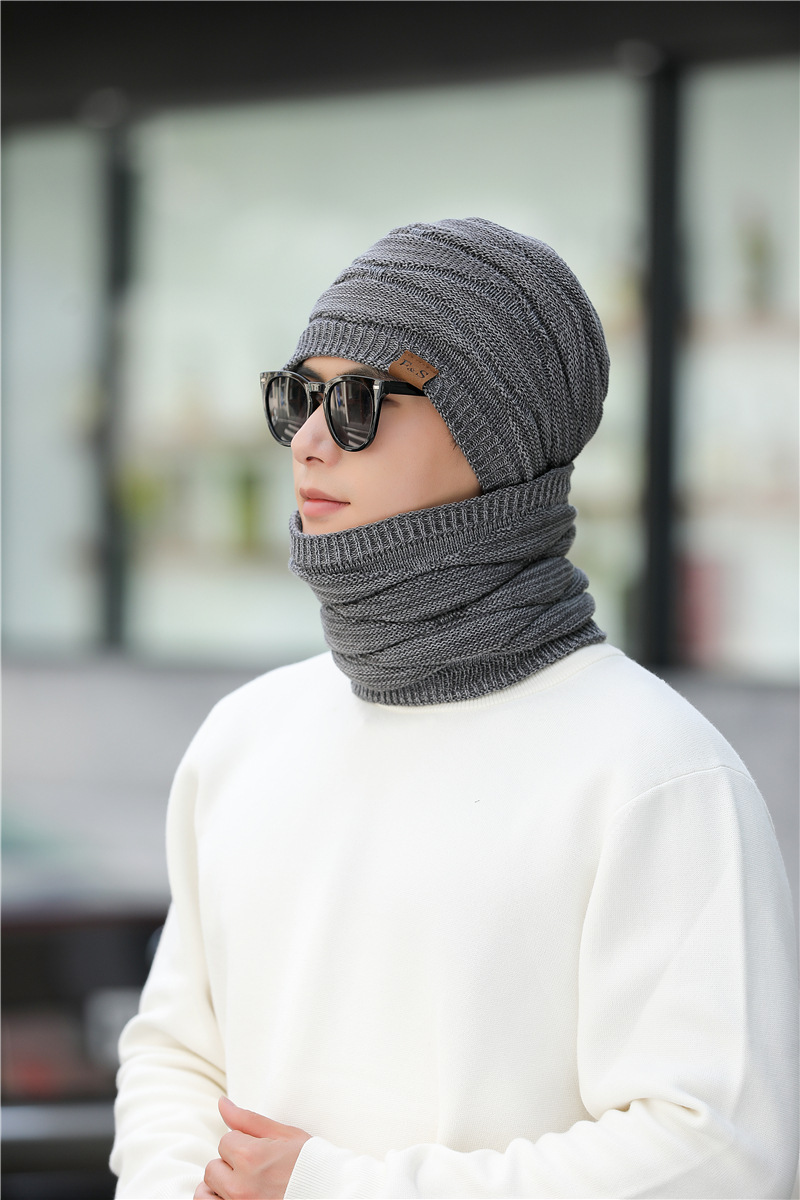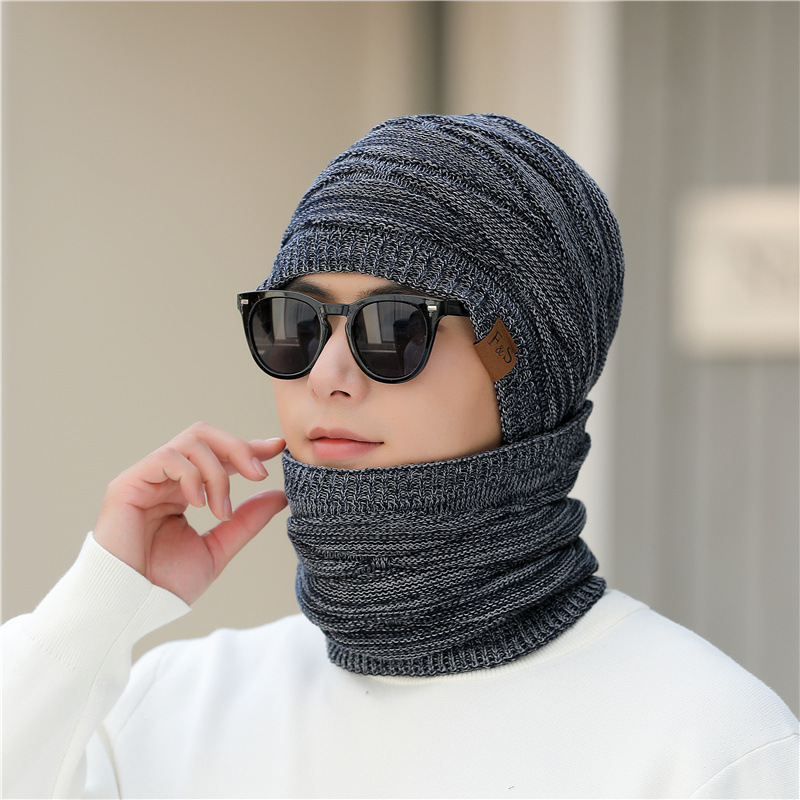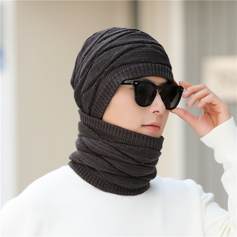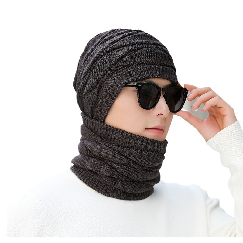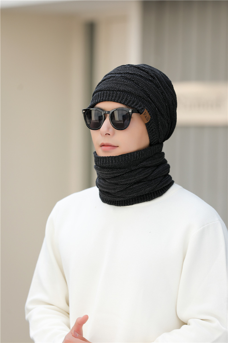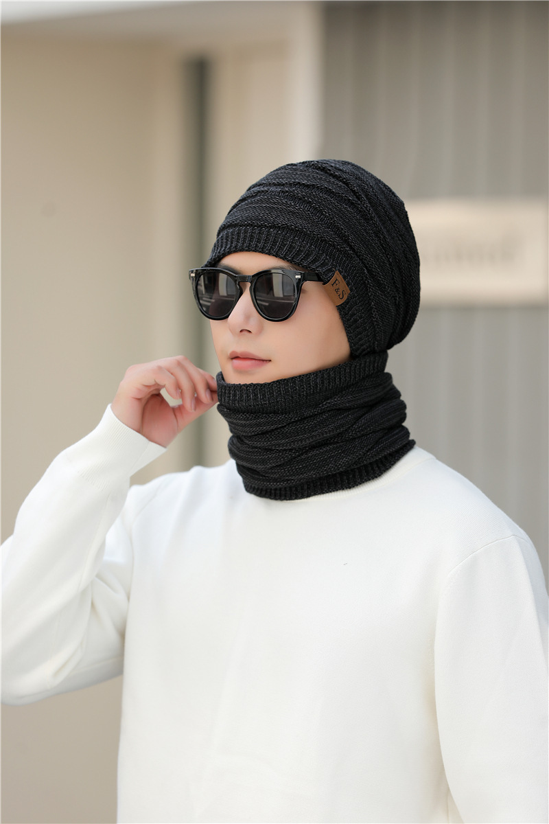 户外运动冬季男士防寒围脖加绒毛线帽保暖围巾帽加厚骑行头套套装
