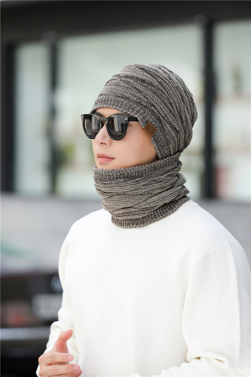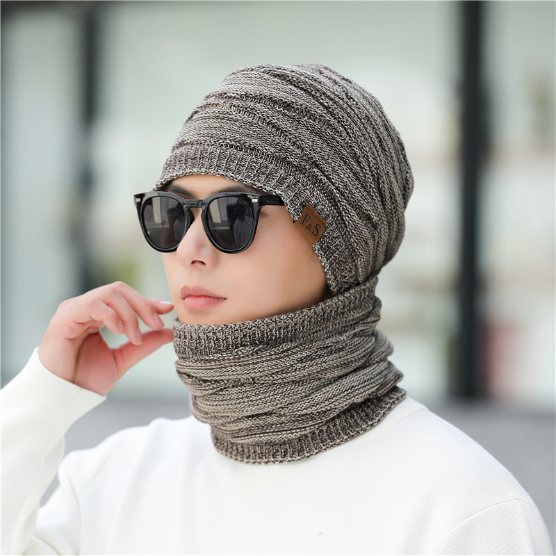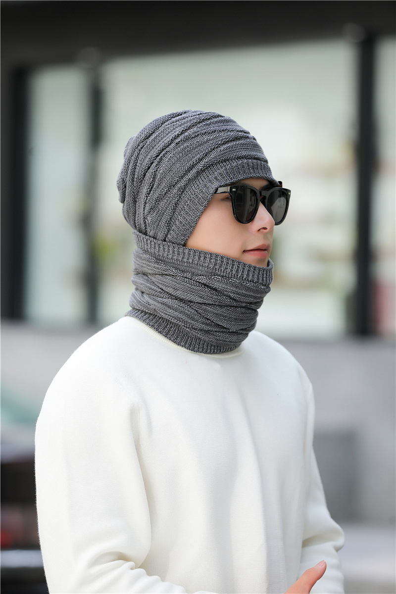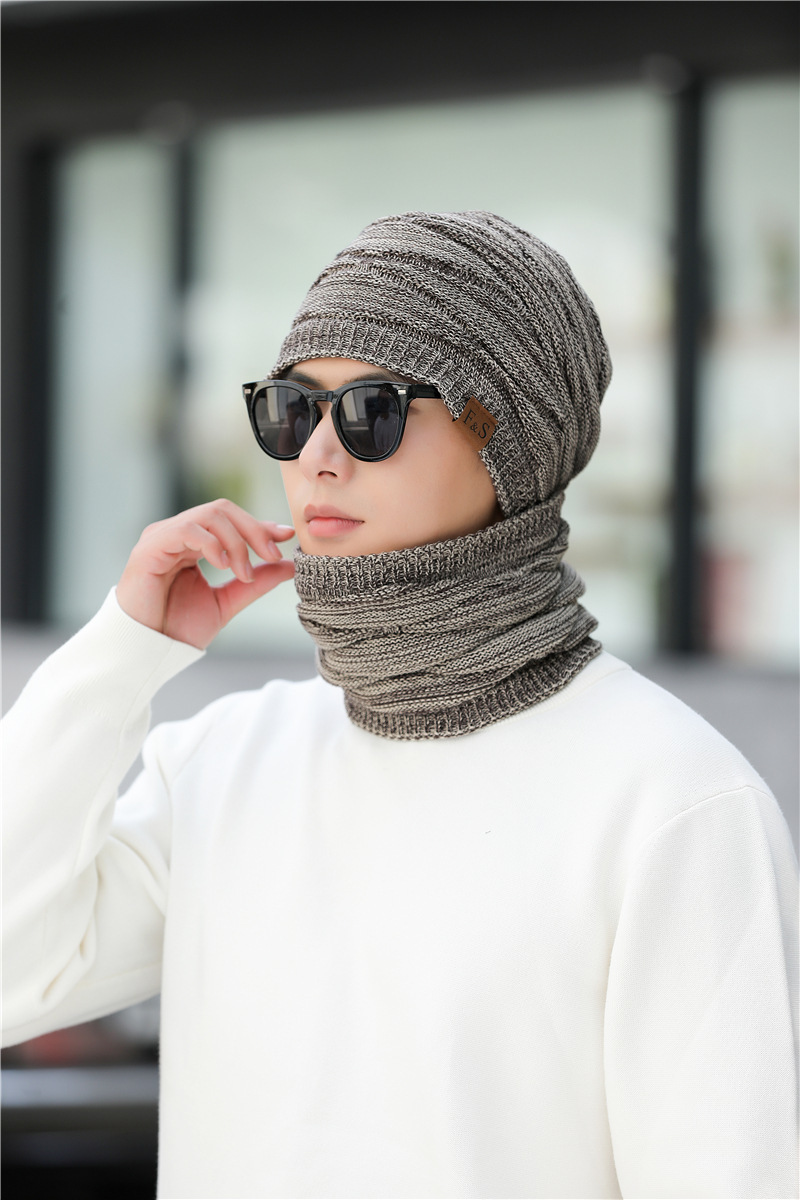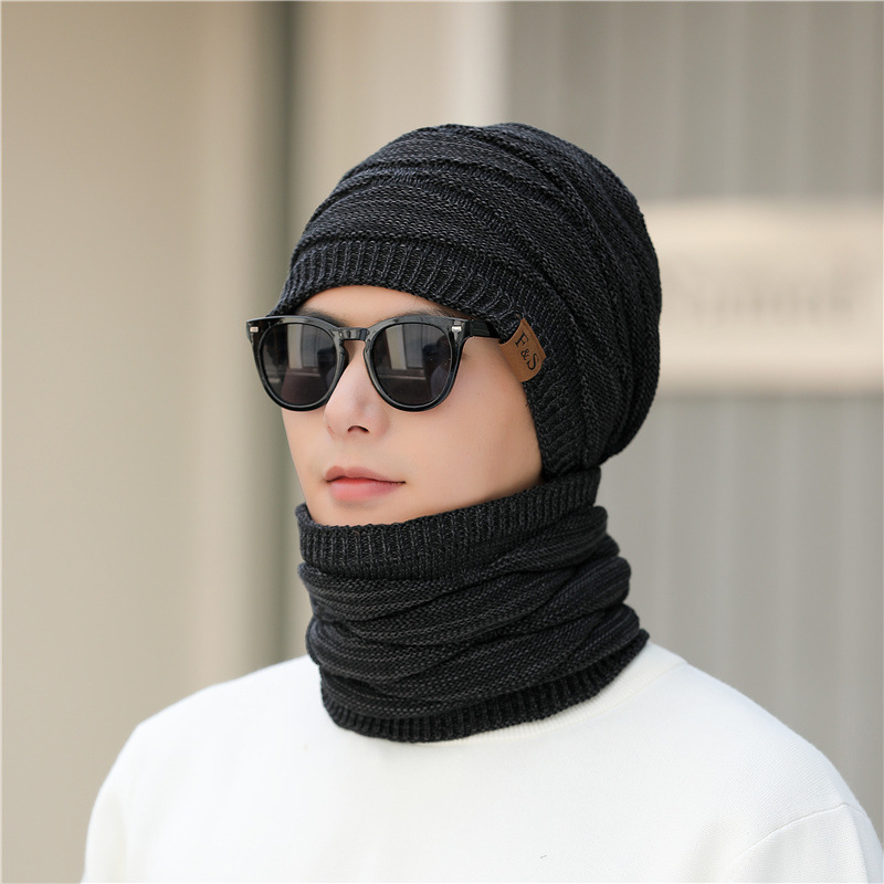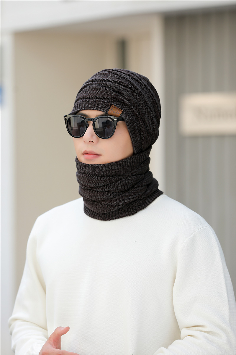 户外运动冬季男士防寒围脖加绒毛线帽保暖围巾帽加厚骑行头套套装