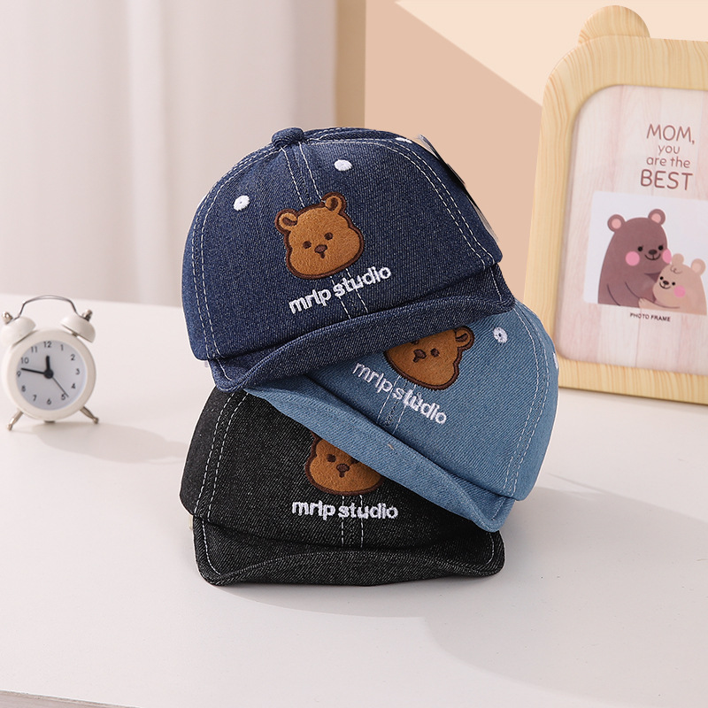 跨境儿童帽子春秋新款婴幼儿卡通小熊鸭舌帽男女宝宝软帽檐棒球帽