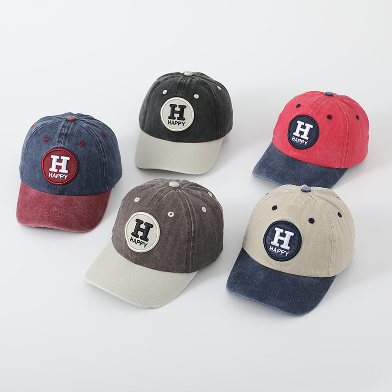 儿童水洗帽子男女童刺绣字母拼色棒球帽户外出游遮阳鸭舌帽童帽
