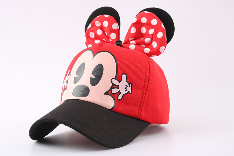 韩版儿童鸭舌帽女大耳朵米老鼠卡通帽子春秋款宝宝棒球帽2-7岁外