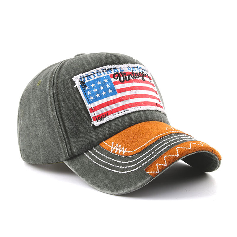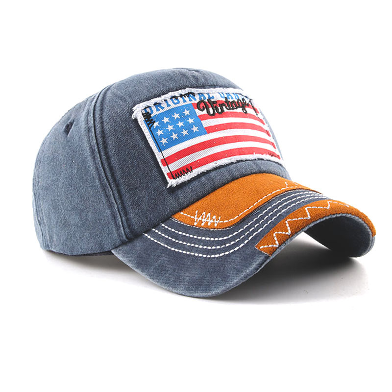 跨境亚马逊爆款帽子美国国旗做旧水洗棒球帽户外遮阳防晒鸭舌帽男