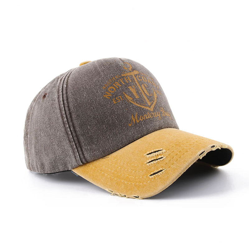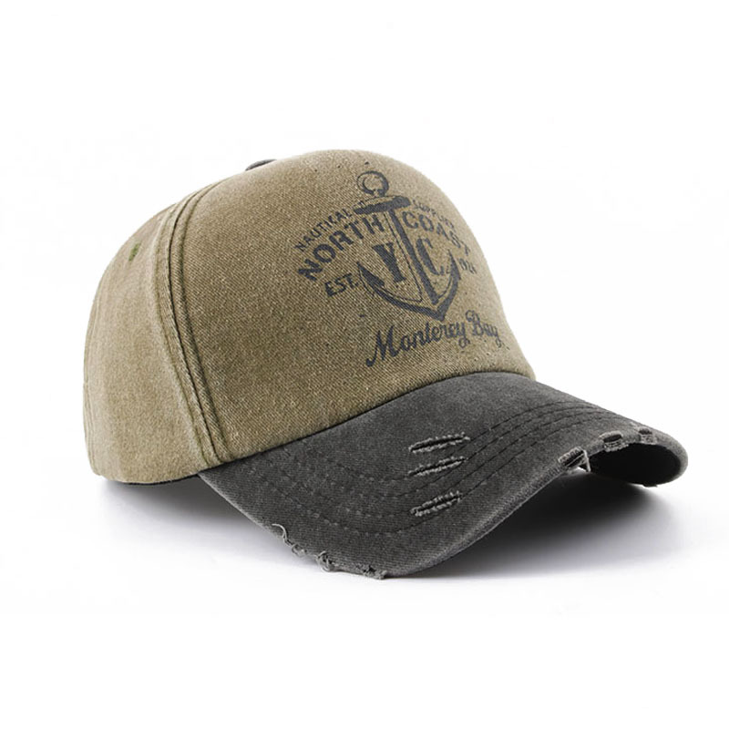 欧美亚马逊帽子男士批发做旧印花锚水洗棒球帽户外复古遮阳鸭舌帽