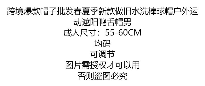 跨境爆款帽子批发春夏季新款做旧水洗棒球帽户外运动遮阳鸭舌帽男