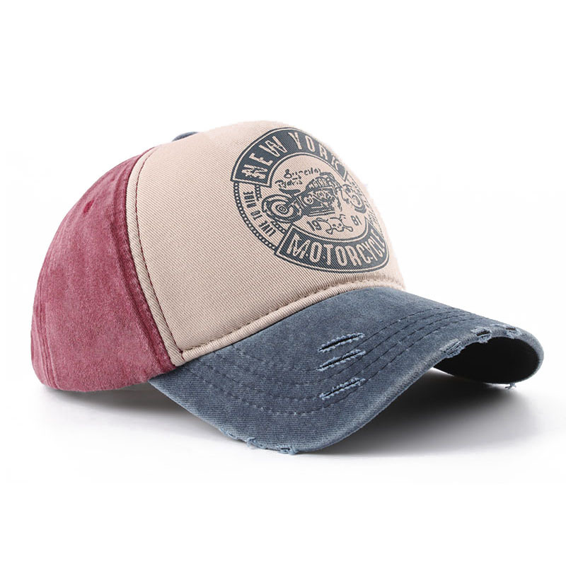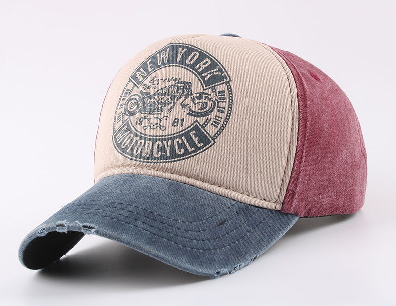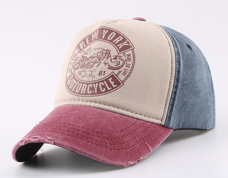 跨境亚马逊欧美帽子男士复士做旧拼色棒球帽春季新款水洗鸭舌帽女