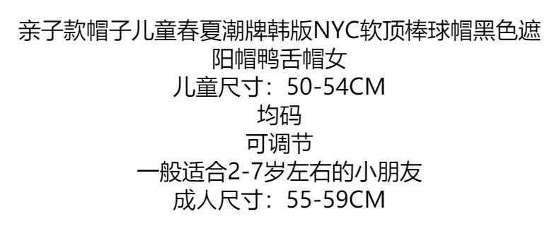 亲子款帽子儿童春夏潮牌韩版NYC软顶棒球帽黑色遮阳帽鸭舌帽女