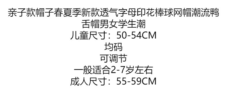 亲子款帽子春夏季新款透气字母印花棒球网帽潮流鸭舌帽男女学生潮