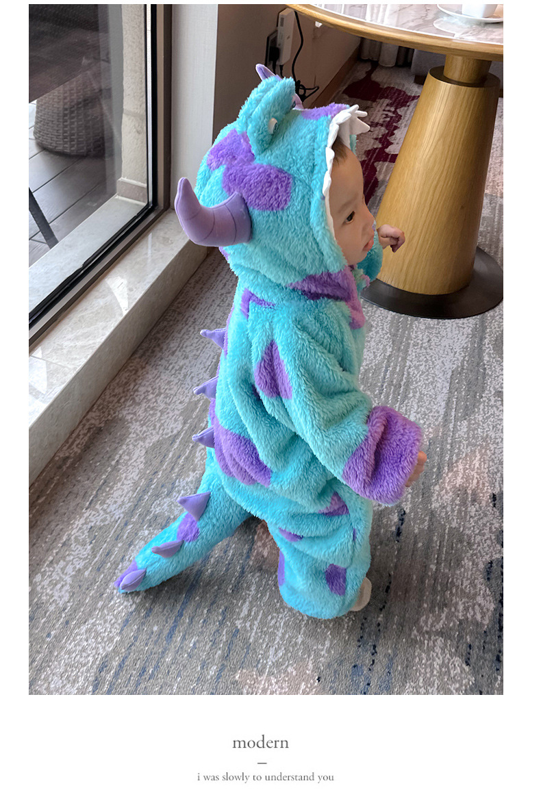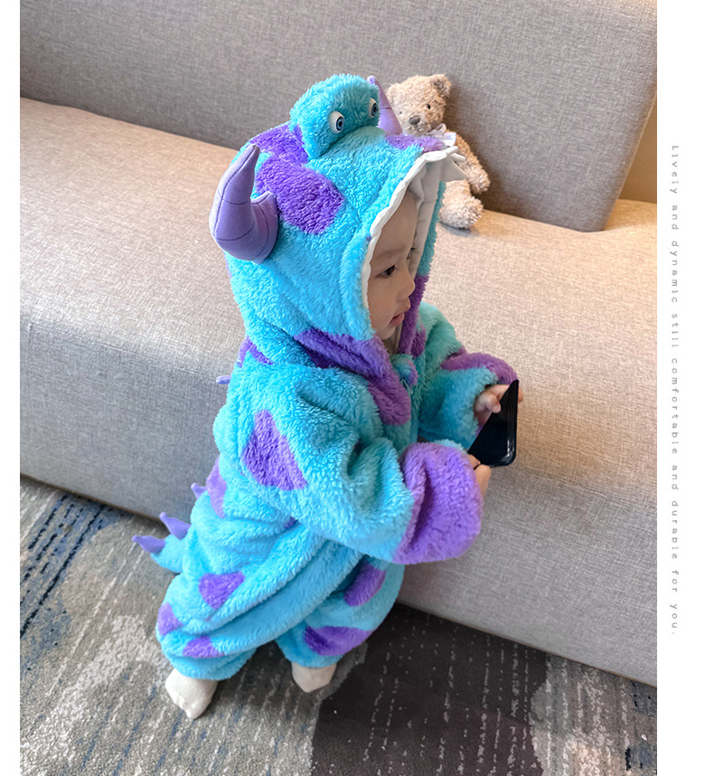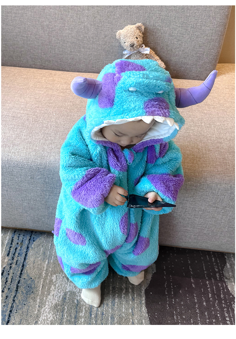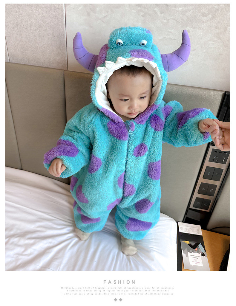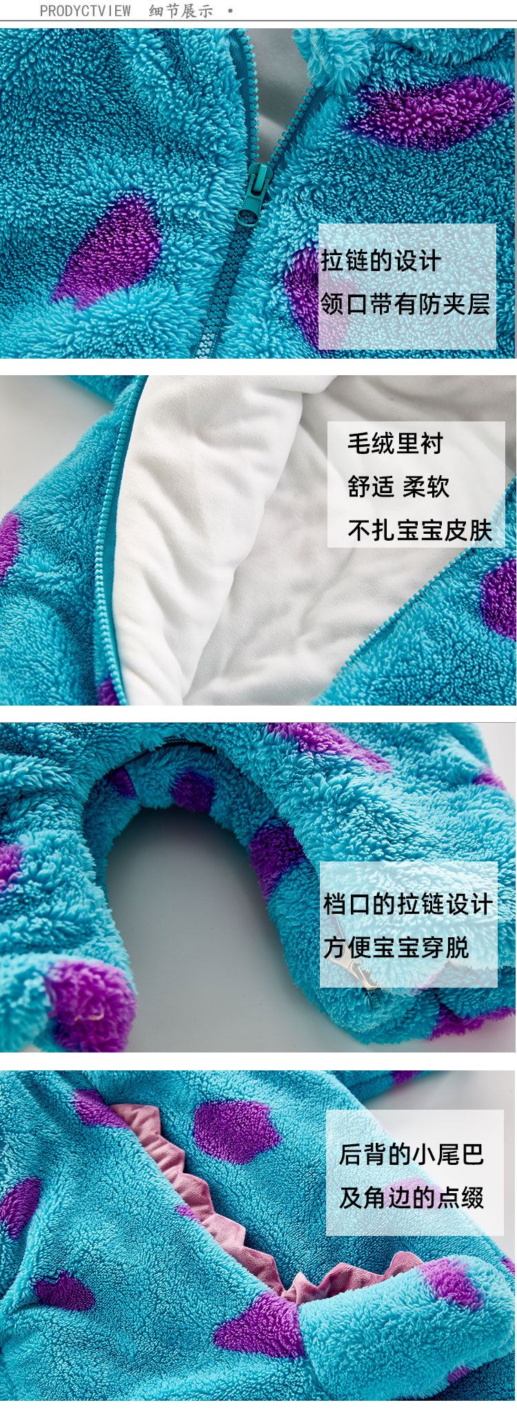 2024秋冬新生儿婴儿连体衣爬服新款连体加厚珊瑚绒动物小怪兽恐龙