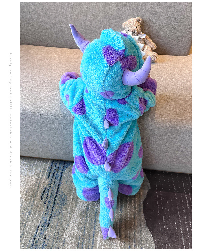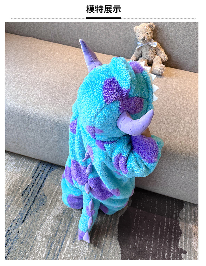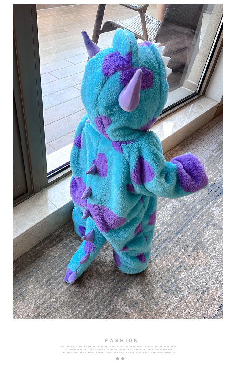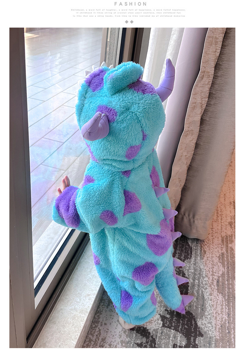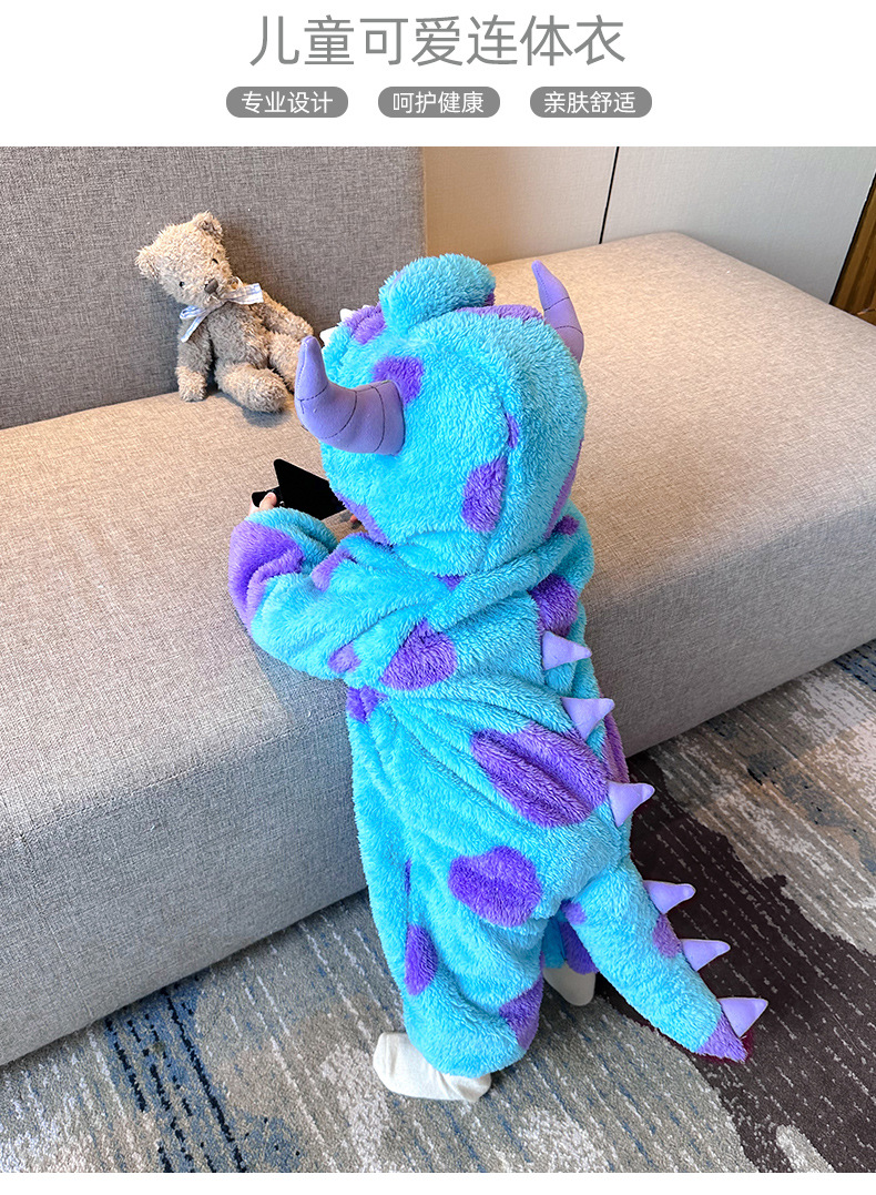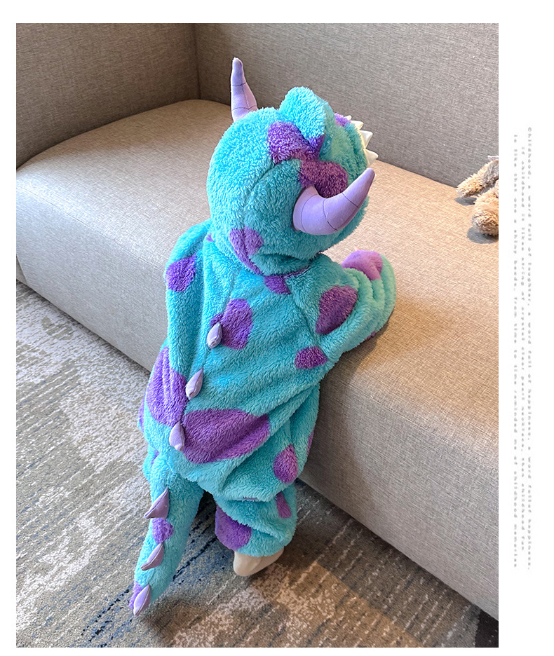 2024秋冬新生儿婴儿连体衣爬服新款连体加厚珊瑚绒动物小怪兽恐龙