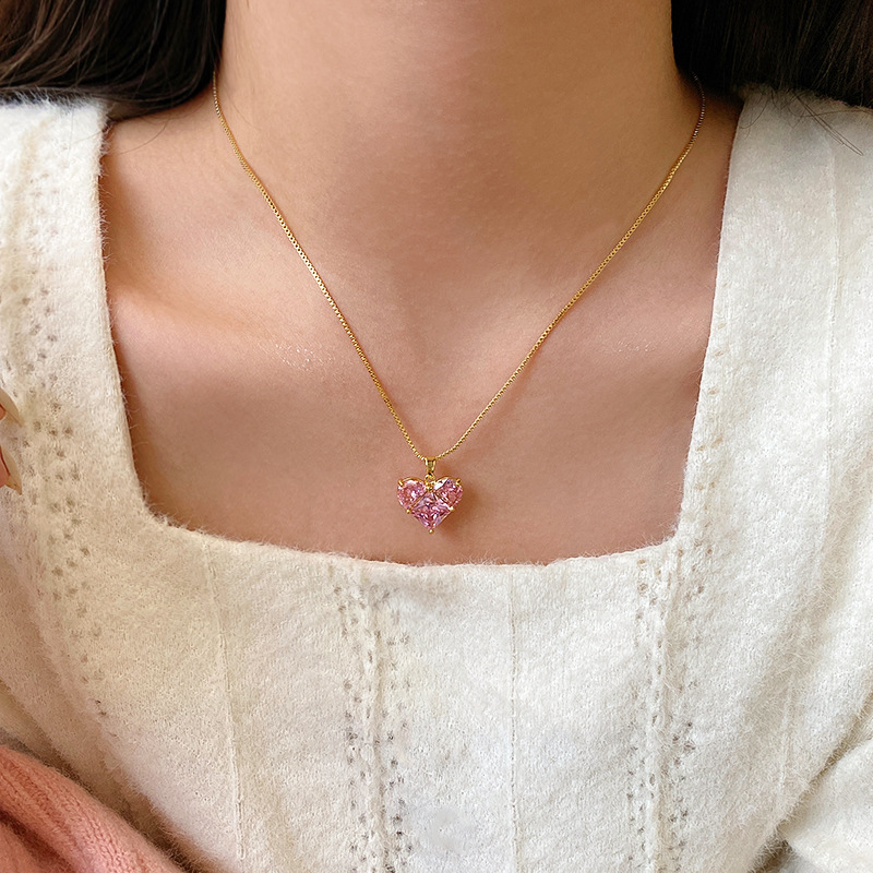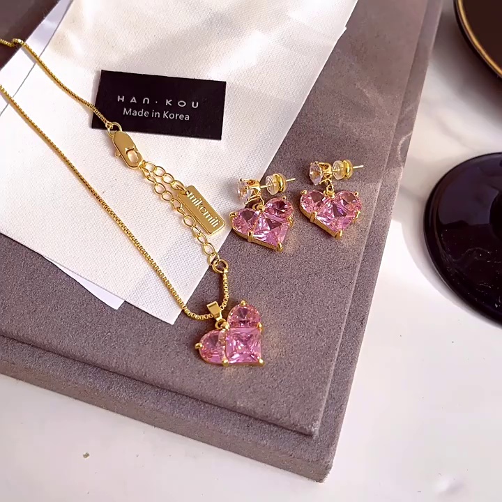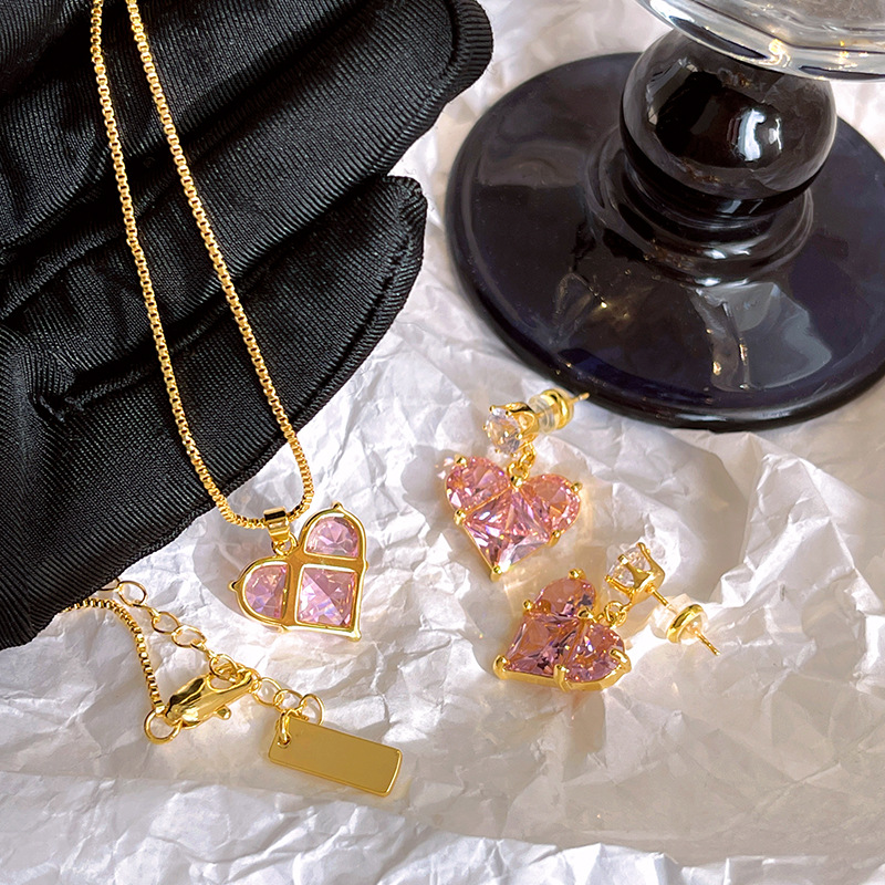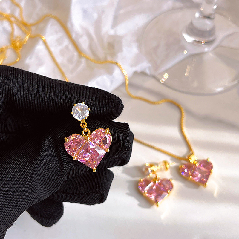 5A级锆石爱心项链套装网红耳饰真金电镀925纯银针爱心耳环女批发