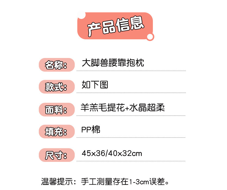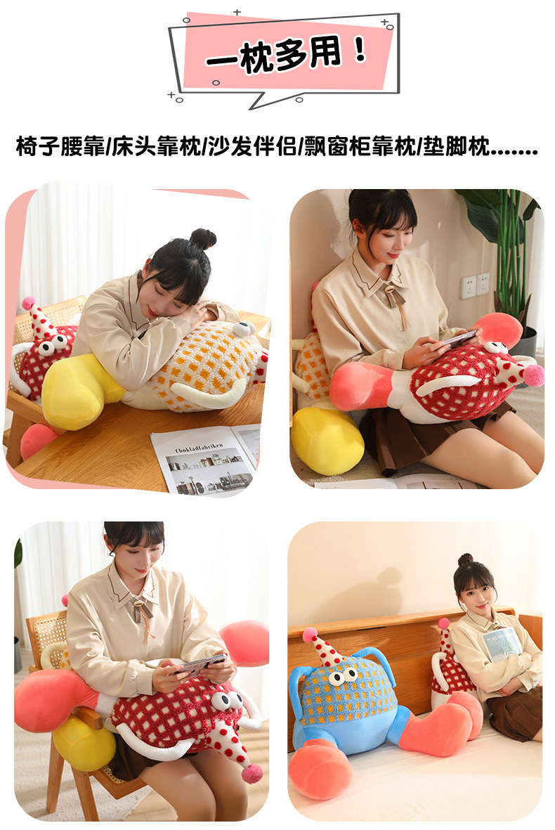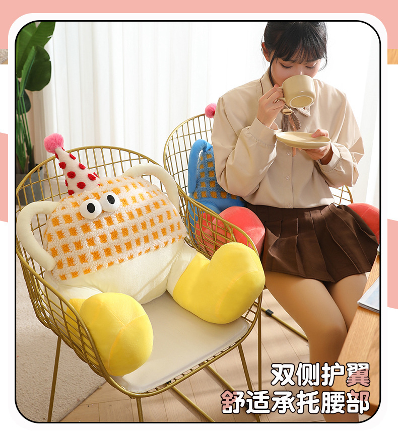 多巴胺小怪兽抱枕沙发靠垫护腰靠背办公室久坐椅子垫飘窗床头靠枕