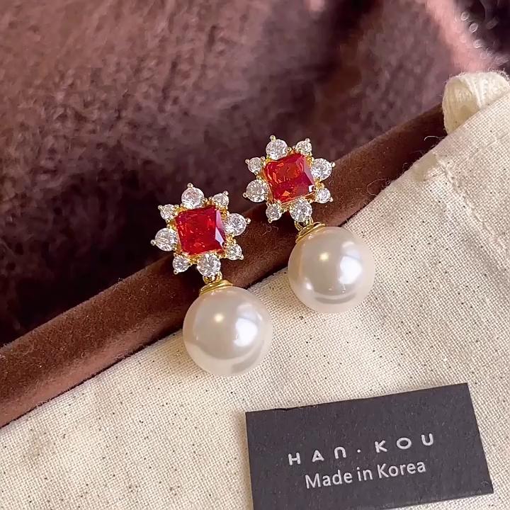 5A级锆石耳环小众高级感耳饰品925纯银针施家澳白珍珠耳钉女超闪