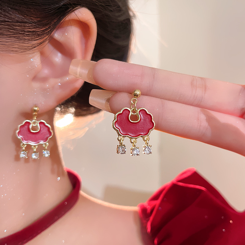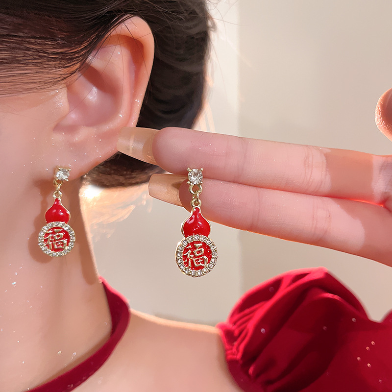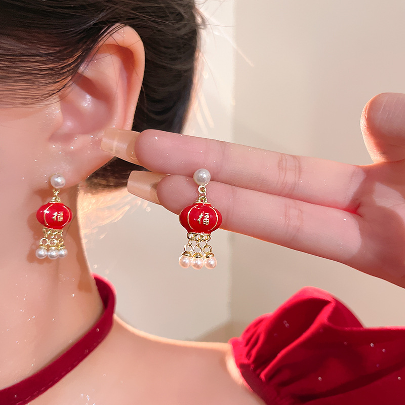 国潮耳环进宝红灯笼耳钉时尚百搭耳饰新年喜庆安可拉红福袋耳环女