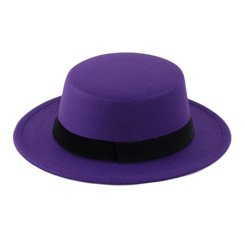 帽子秋冬新款毛呢帽男女帽复古英伦绅士平顶毛呢礼帽舞蹈厂家批发
