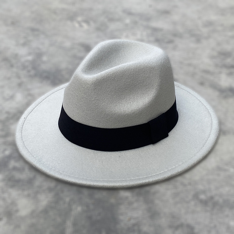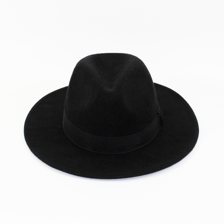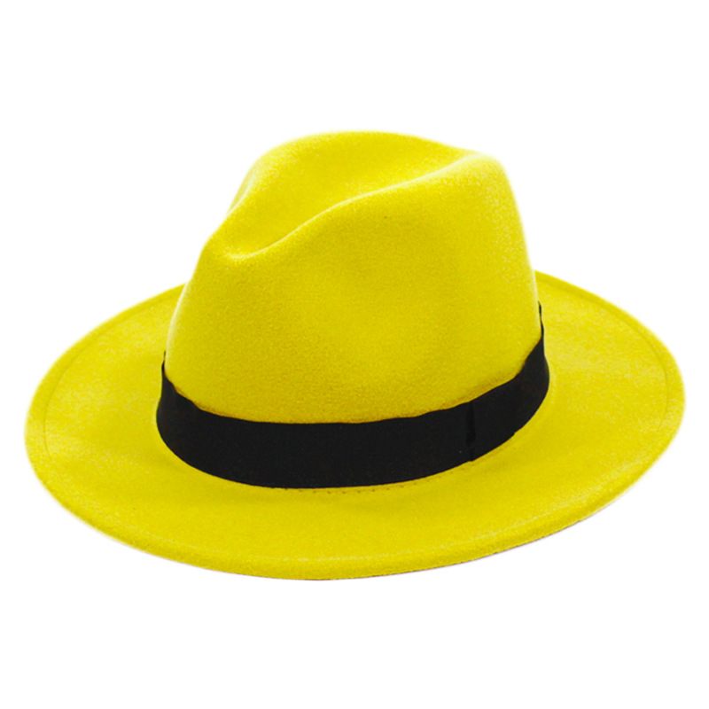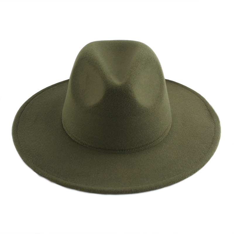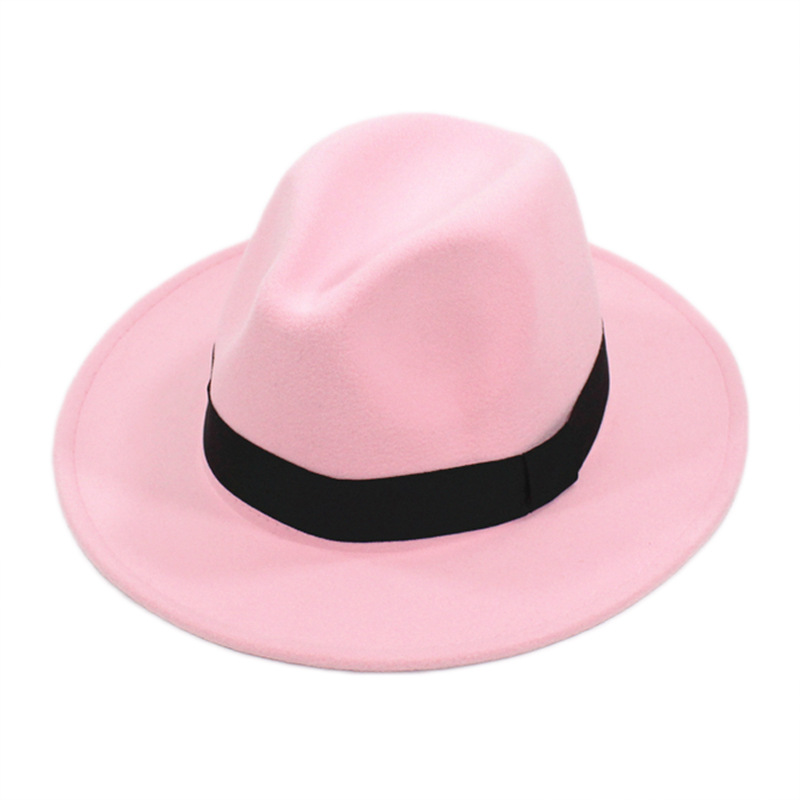 帽子英伦复古欧美爵士帽男女大檐礼帽仿羊毛呢毛毡帽百搭遮阳表演