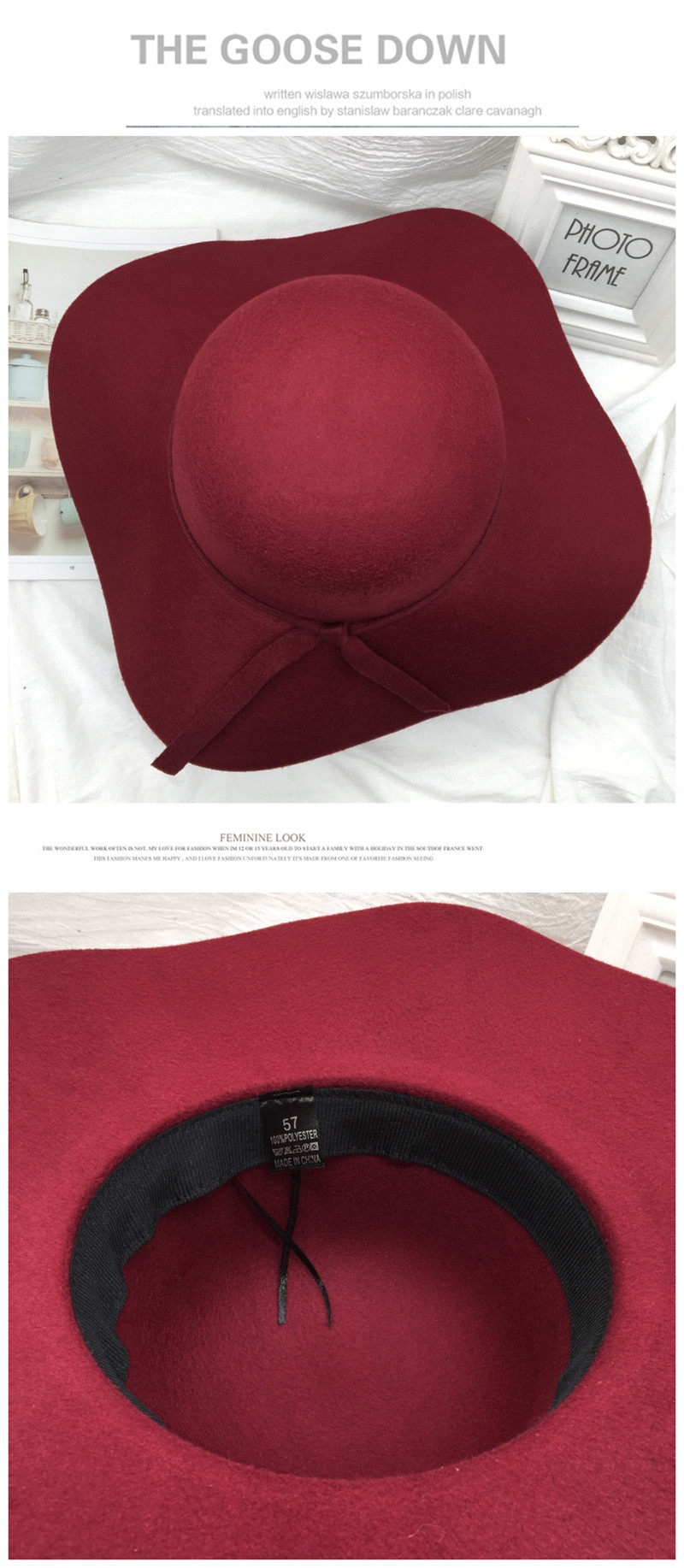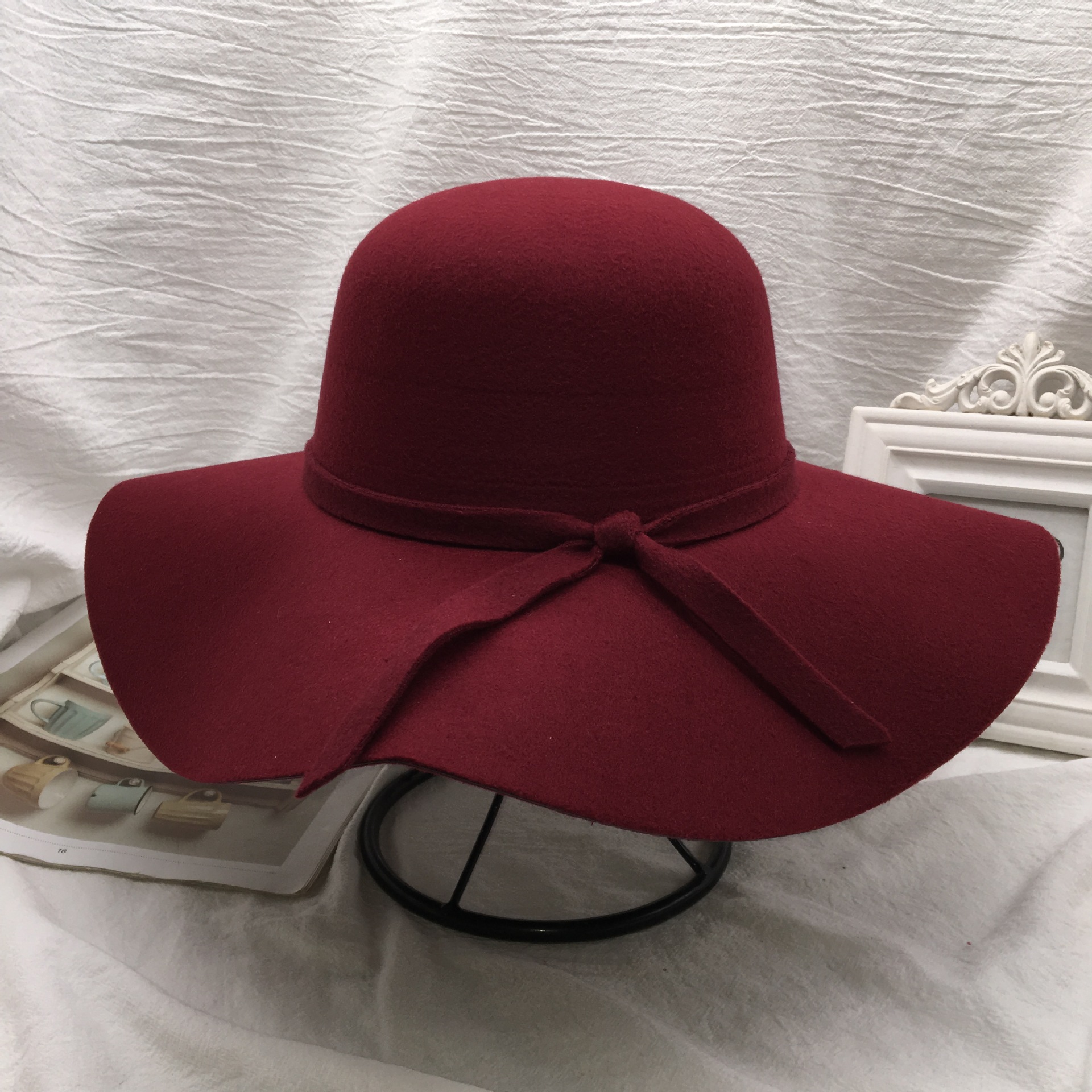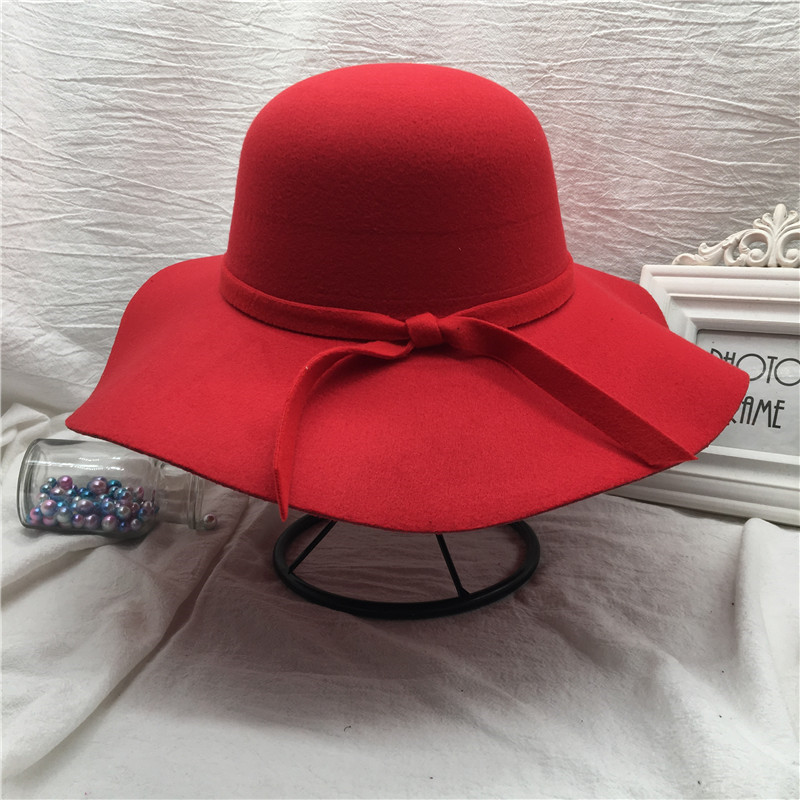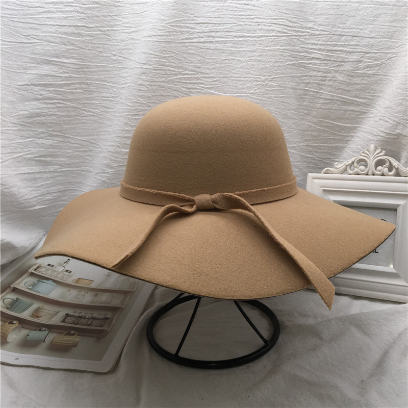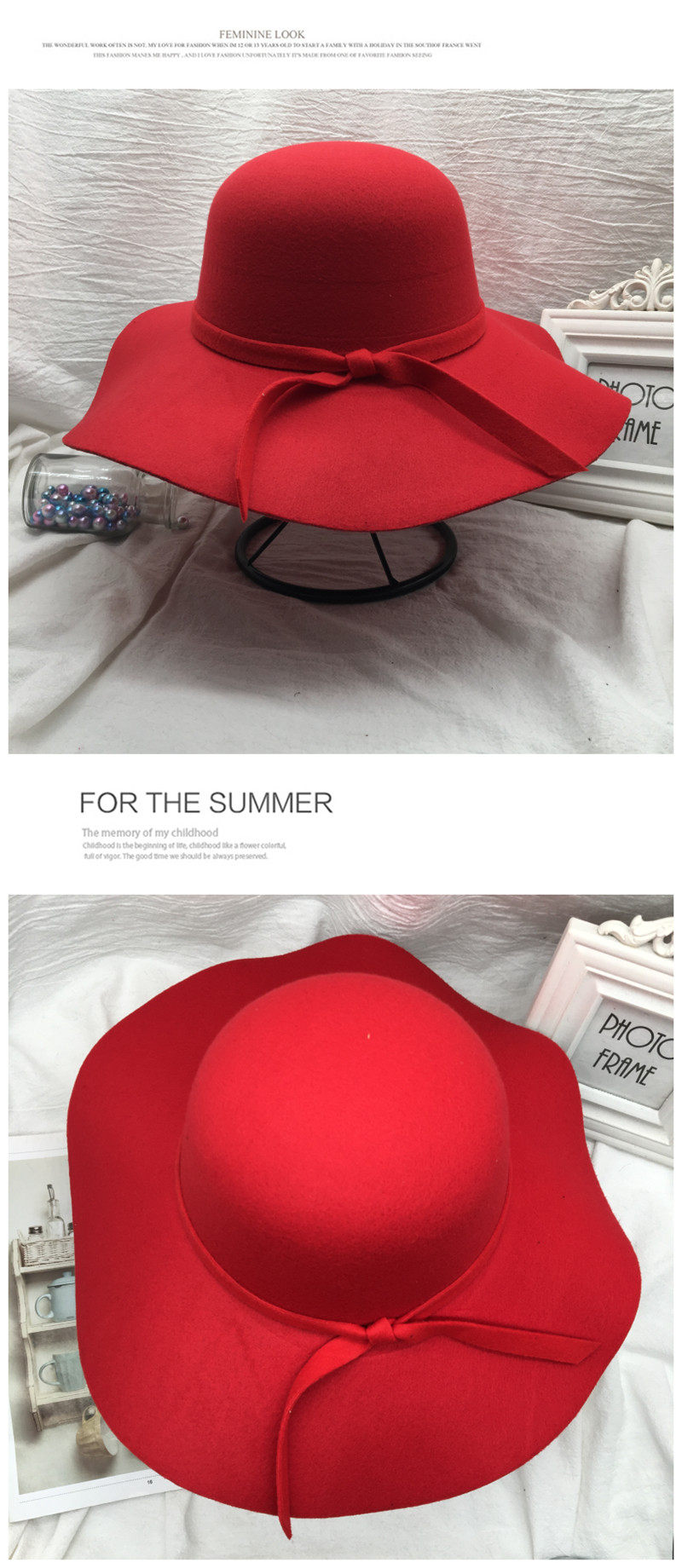 黑色渔夫帽子女秋冬韩国百搭蝴蝶结礼帽女圆顶羊毛呢大檐盆帽复古