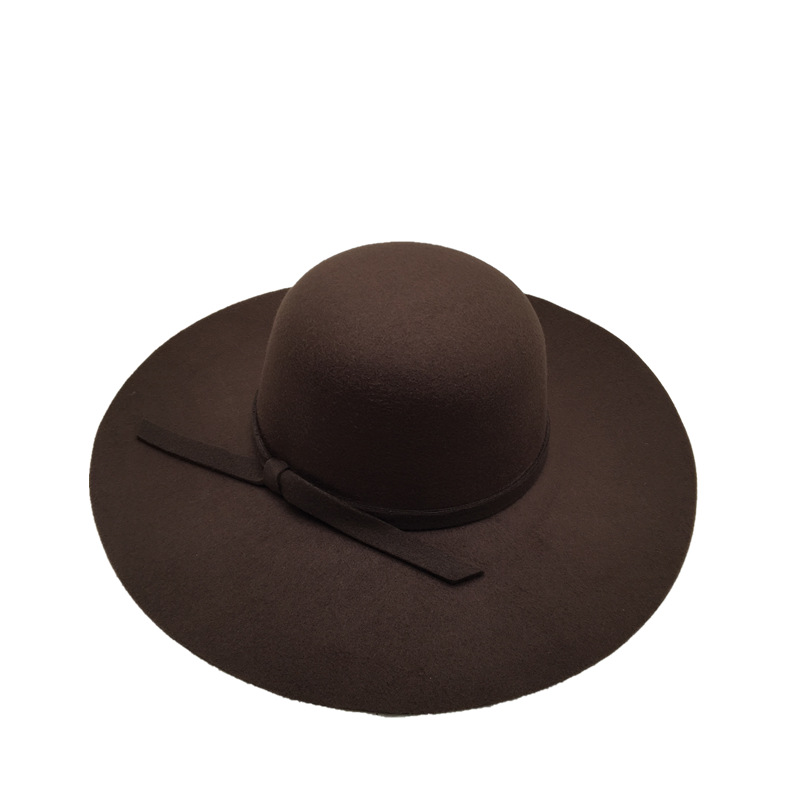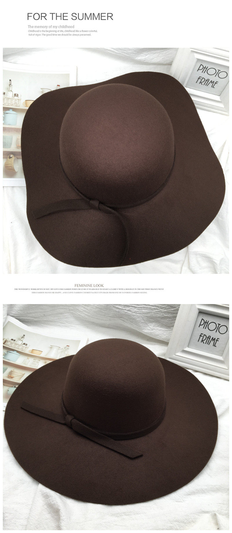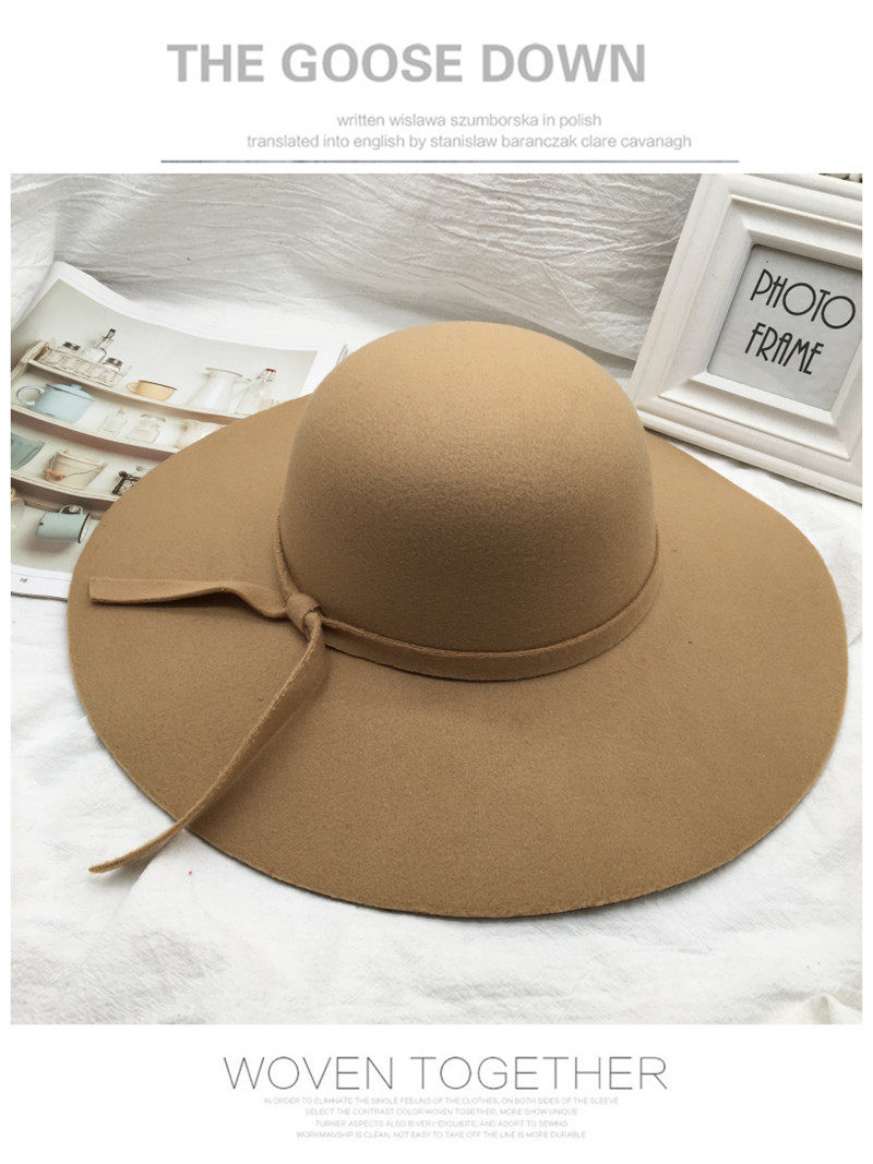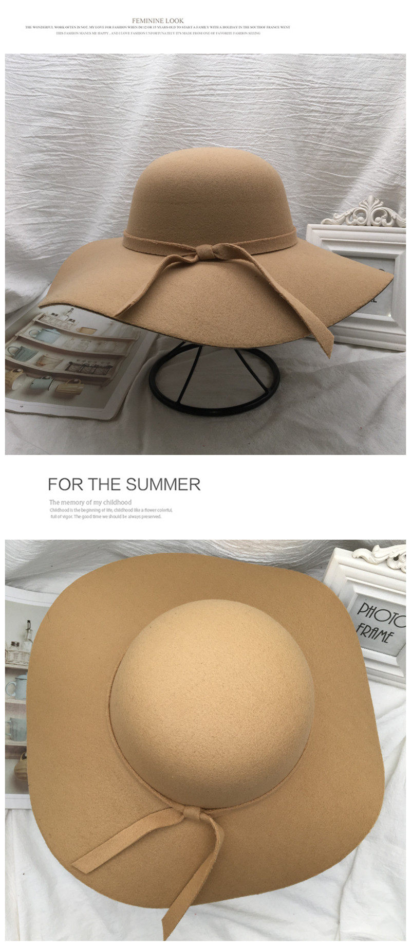 黑色渔夫帽子女秋冬韩国百搭蝴蝶结礼帽女圆顶羊毛呢大檐盆帽复古