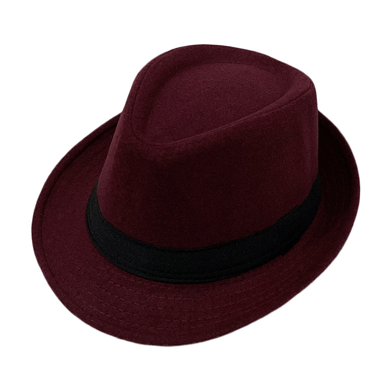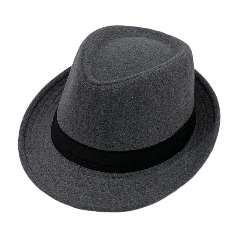 韩版潮时尚礼帽男士英伦爵士帽子女春秋天黑色礼帽毛呢帽老人帽成