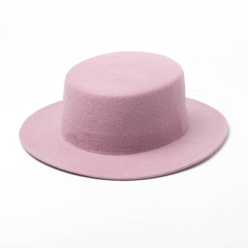 新款秋冬礼帽男女复古英伦平顶平檐毛呢帽子 大檐舞蹈帽厂家直销