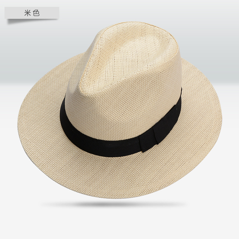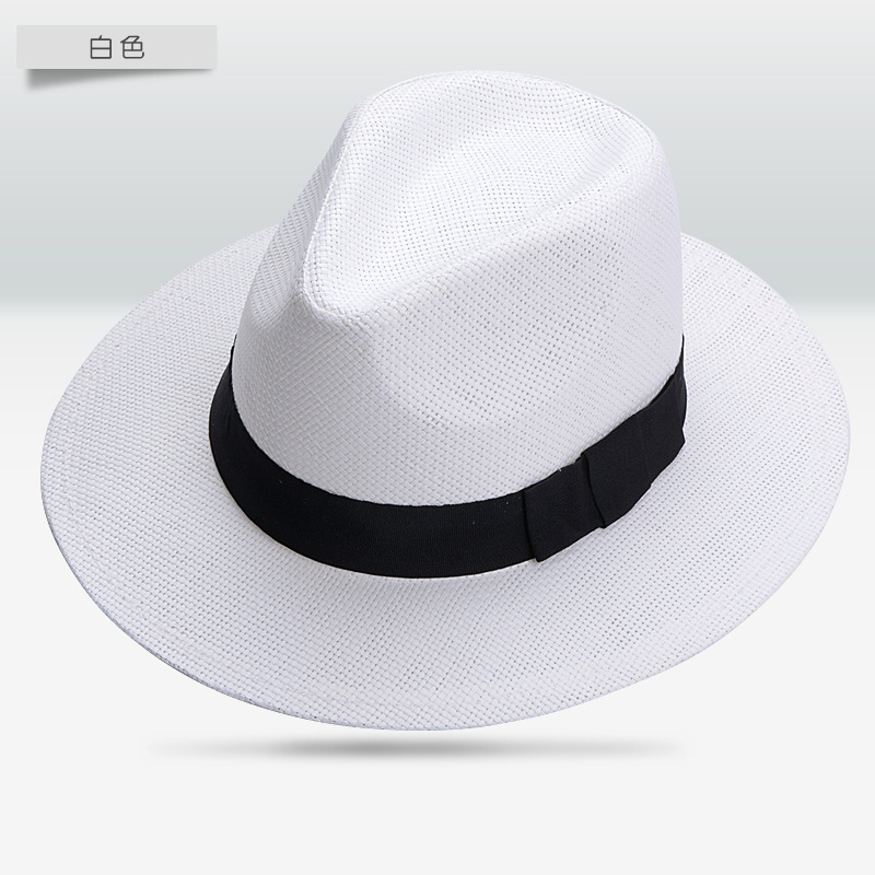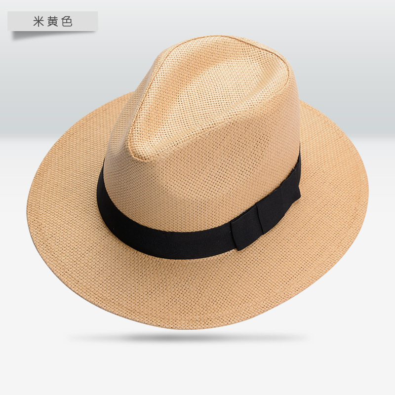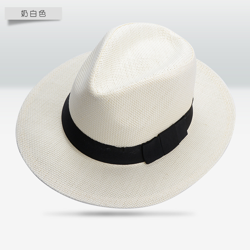 帽子夏季大檐草帽男复古英伦巴拿马草帽女纸草编纯色礼帽沙滩跨境