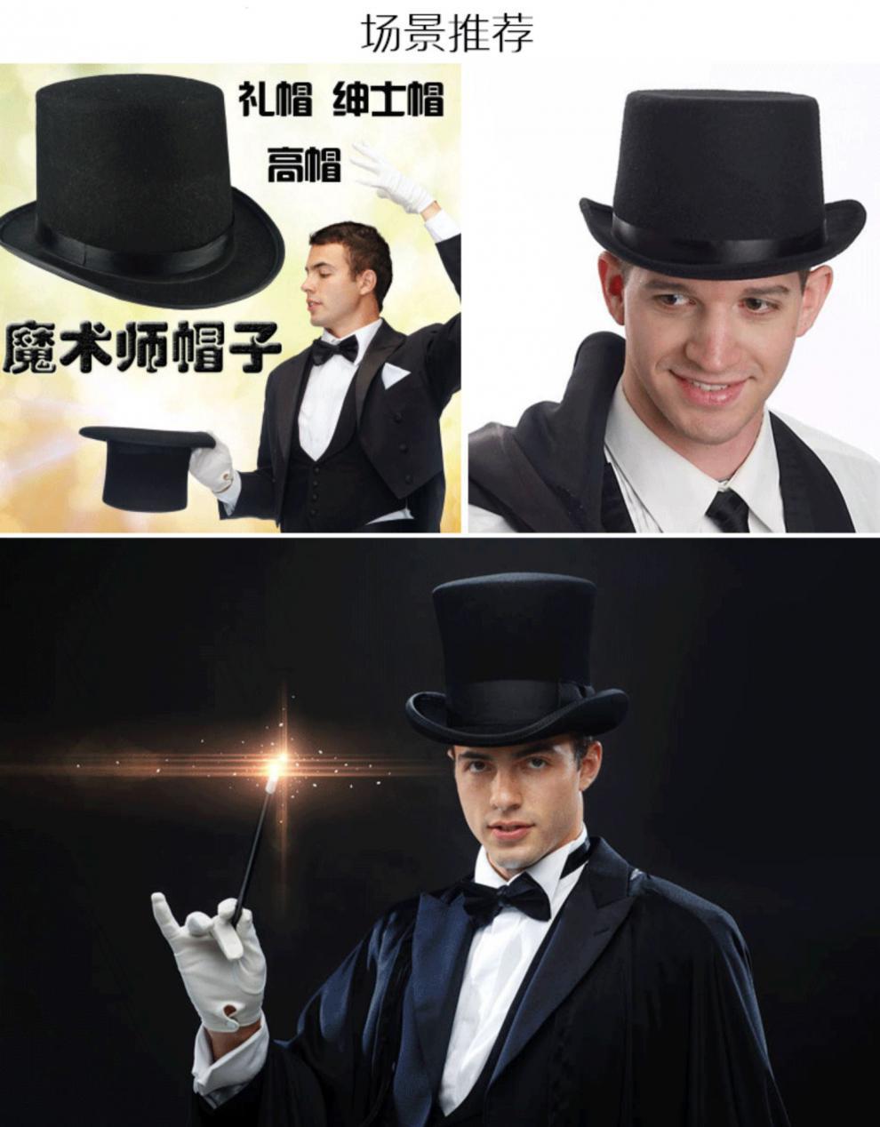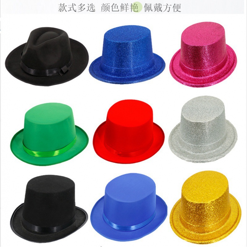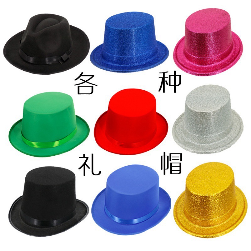 帽子爵士帽魔术师高帽黑色绅士礼帽针织布金粉绿成人男女舞台表演
