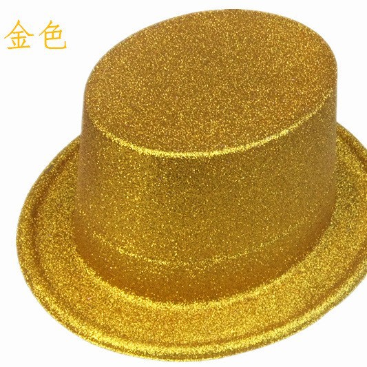 塑料礼帽金粉高帽爵士帽林肯帽魔术师帽万圣节表演金葱粉演出道具