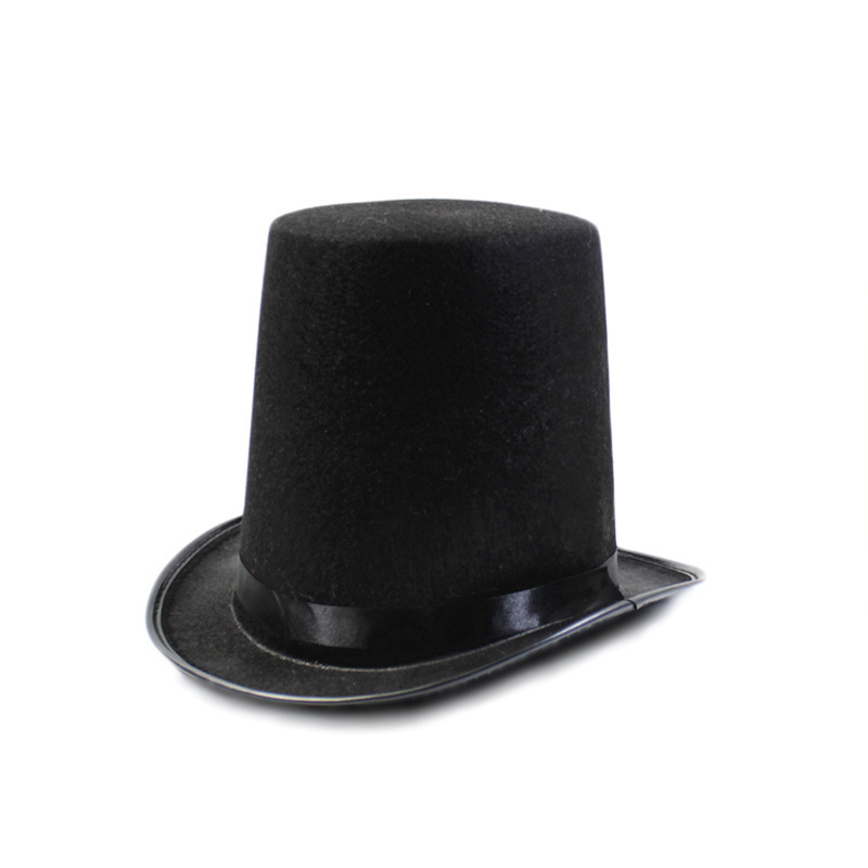 魔术师帽子林肯礼帽高帽一次成型毡帽舞台儿童表演黑色装扮爵士帽
