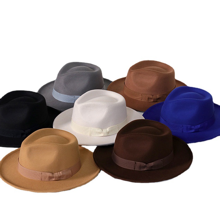 蝴蝶结礼帽爱心帽头毡帽小翘边男士礼帽复古爵士帽子成人帽现货礼