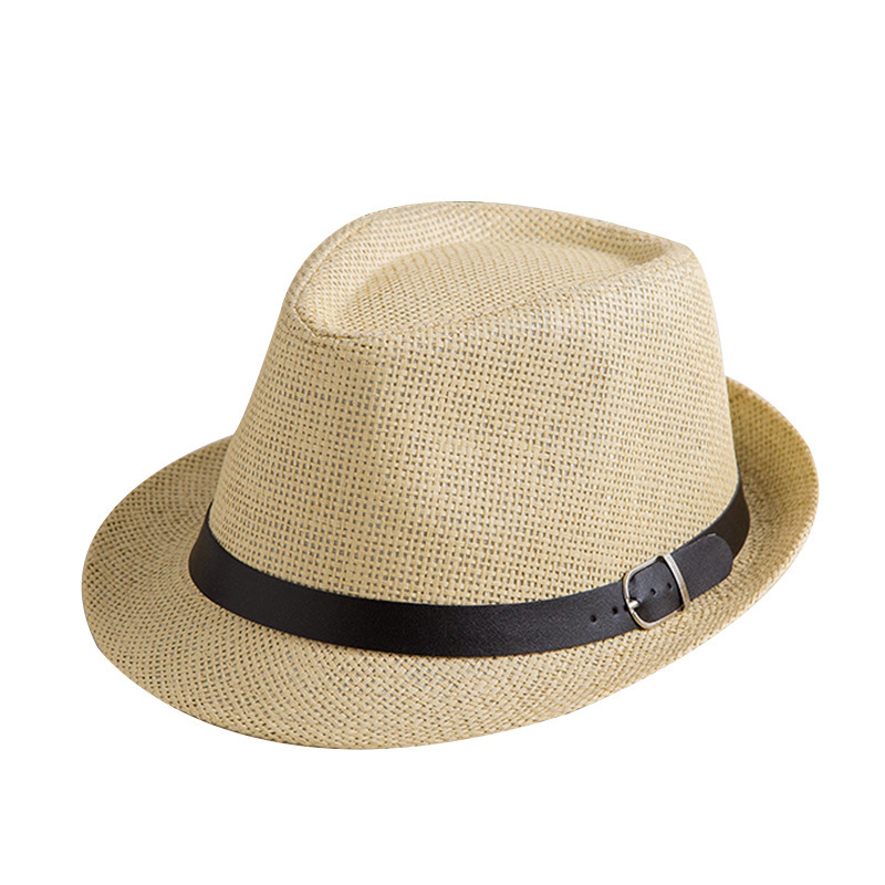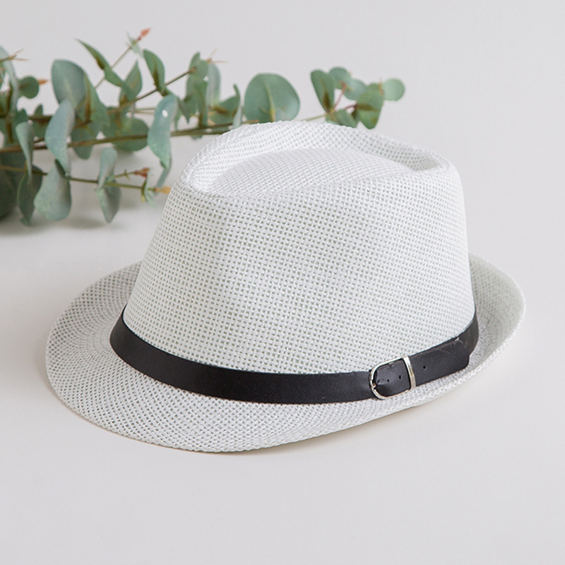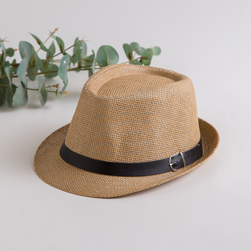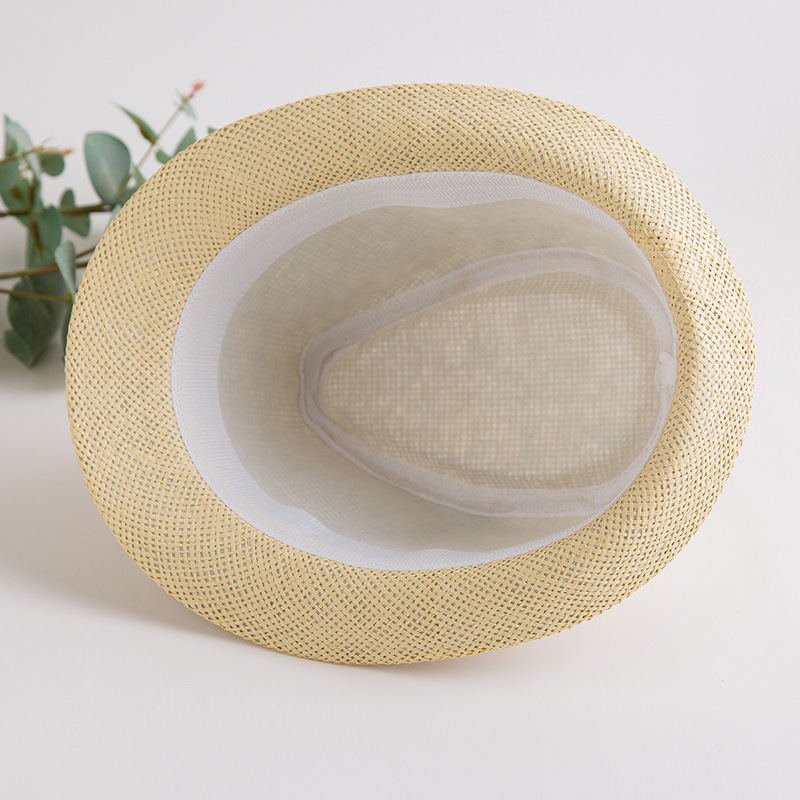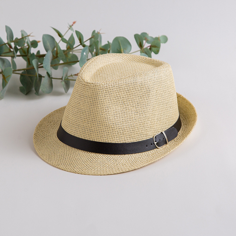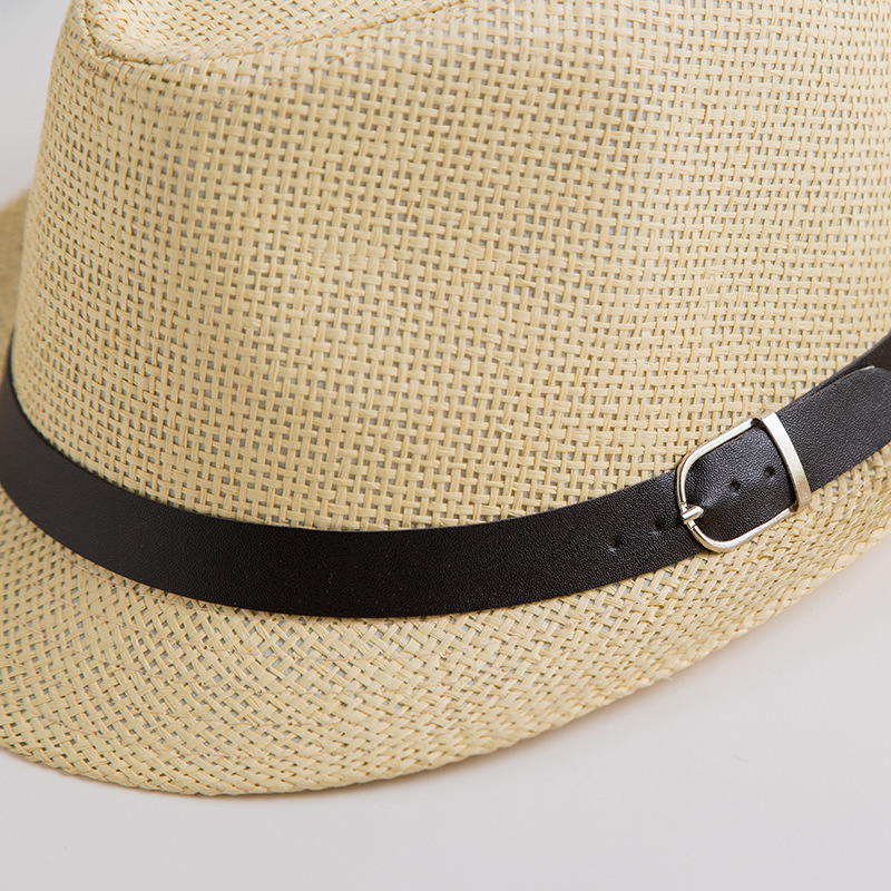 跨境草帽沙滩帽亲子夏纸草编皮带礼帽卷边英伦爵士帽男logo亚马逊