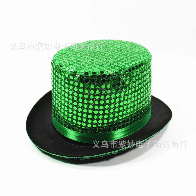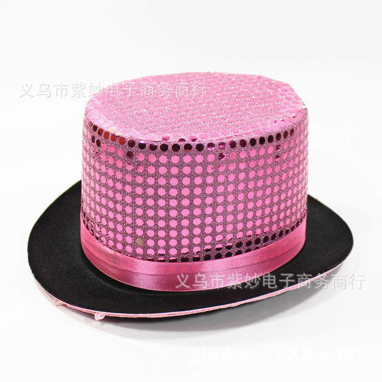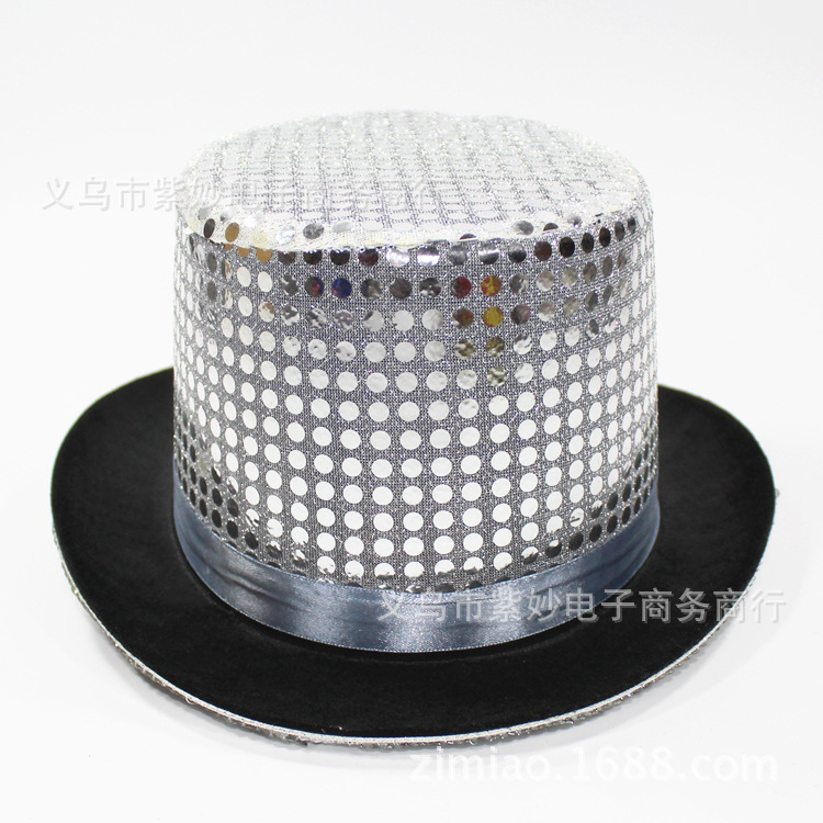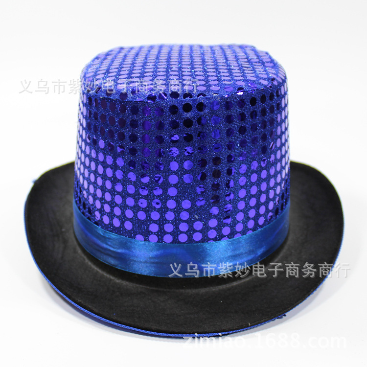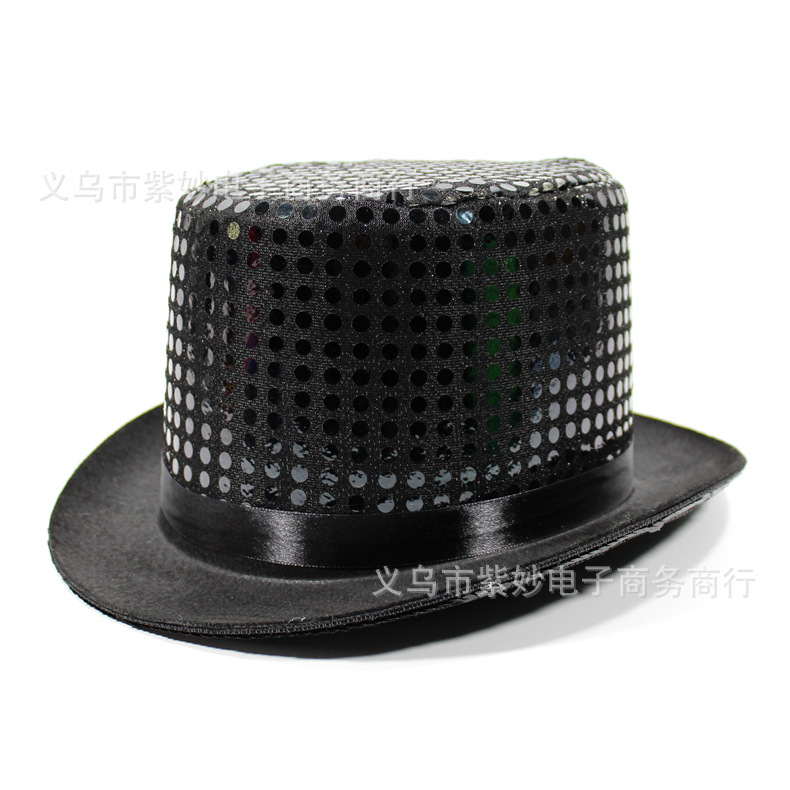 亮片爵士帽表演出礼帽高顶定型帽无纺布毡帽万圣节帽子跨境亚马逊
