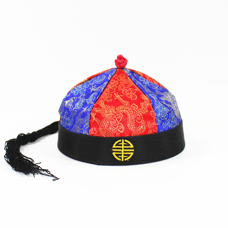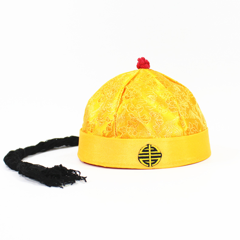 地主帽古代帽子瓜皮帽带辫子软壳皇帝帽太子帽清朝古装帽表演舞台