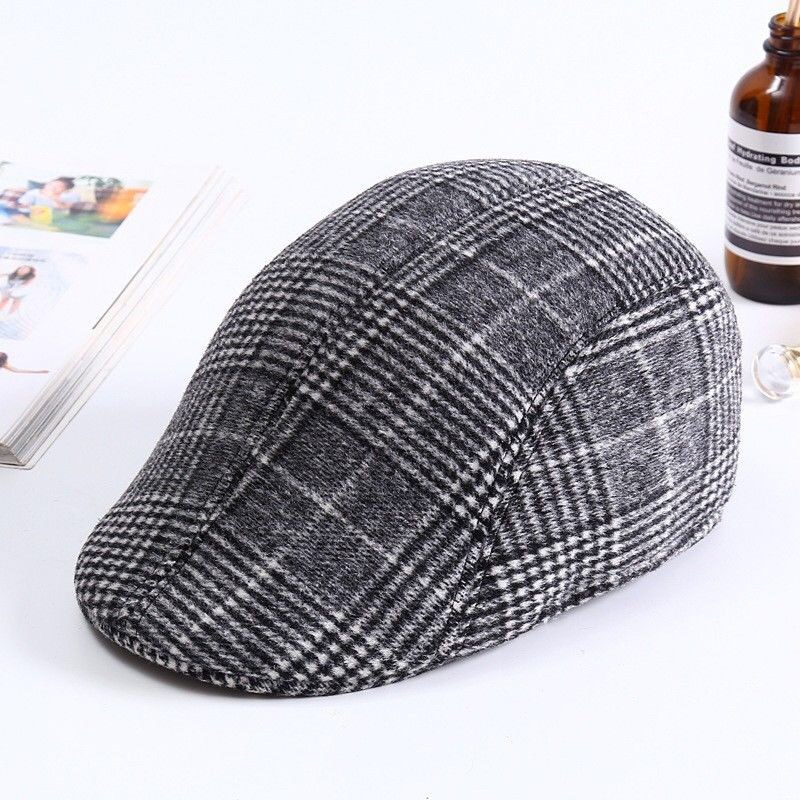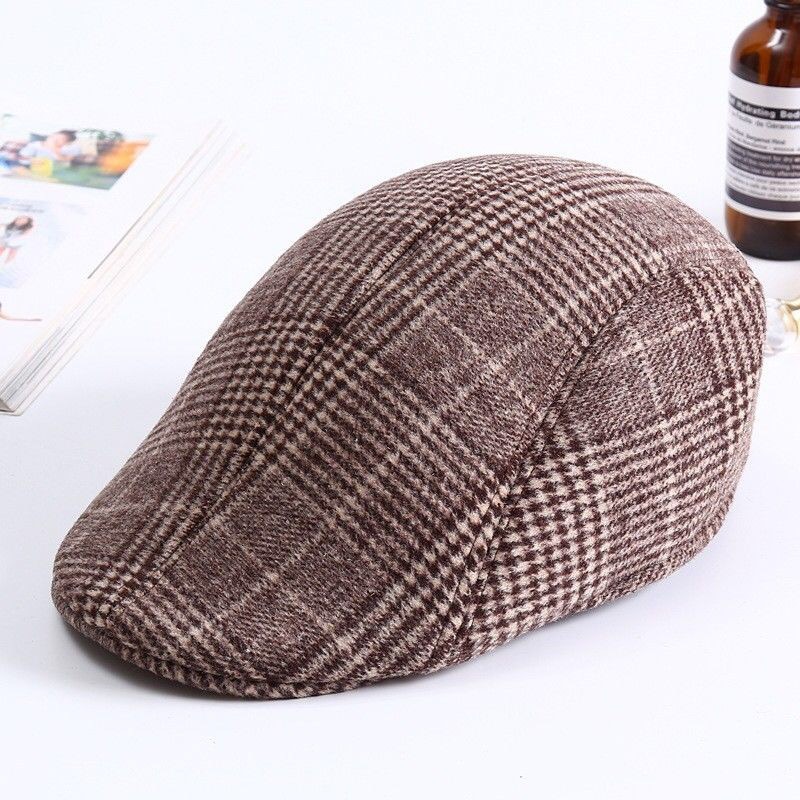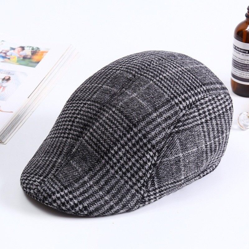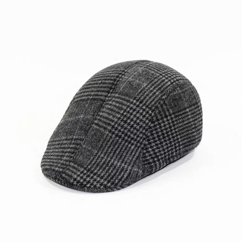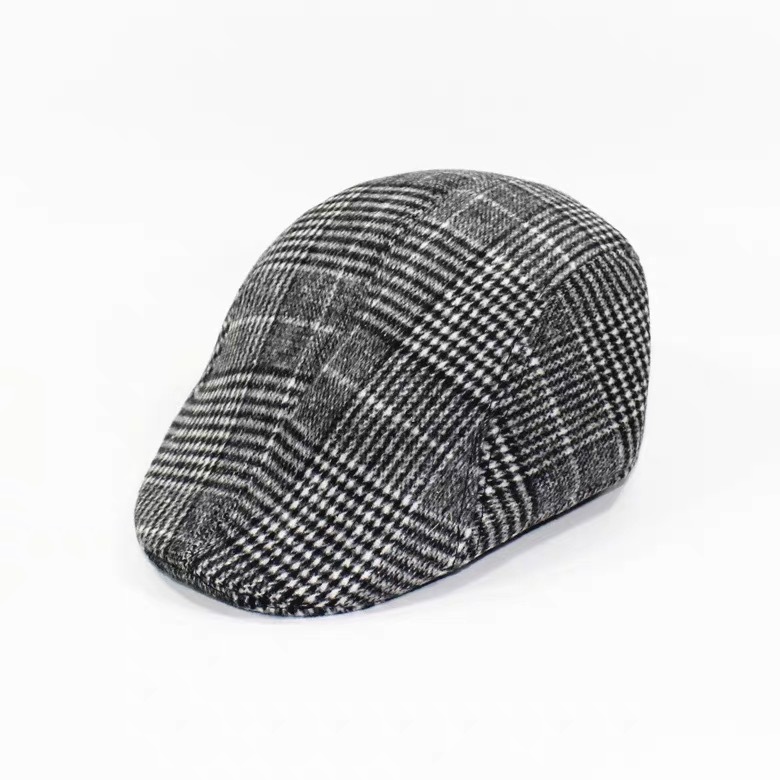 复古鸭舌帽男 秋冬格子贝雷帽韩版中老年帽子 百搭休闲前进帽批发