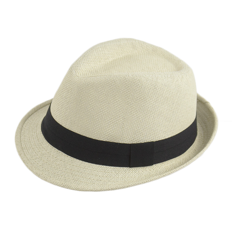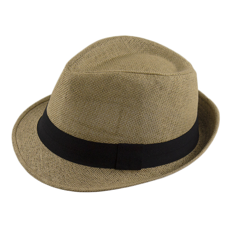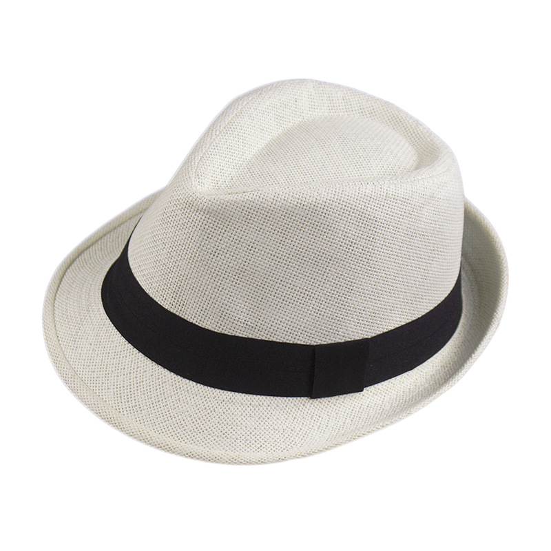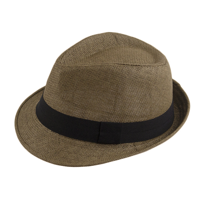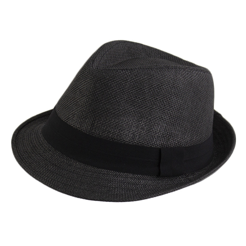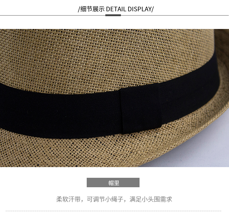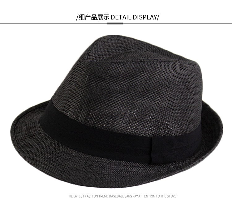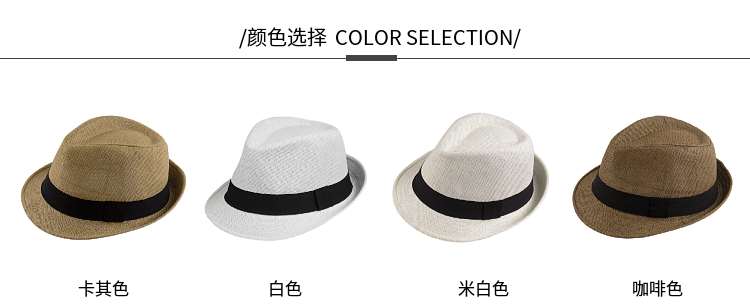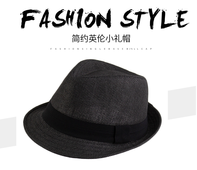 帽子男英伦礼帽爵士帽防晒加密草编短檐韩版女百搭出游平顶小草帽