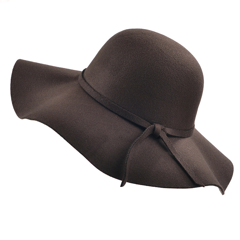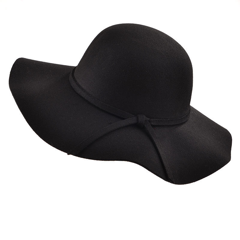 英伦复古女欧美毛呢大檐帽韩版圆顶黑色秋冬季大沿礼帽遮阳帽子女
