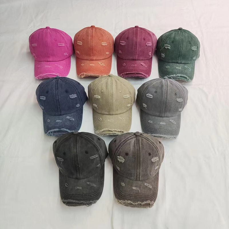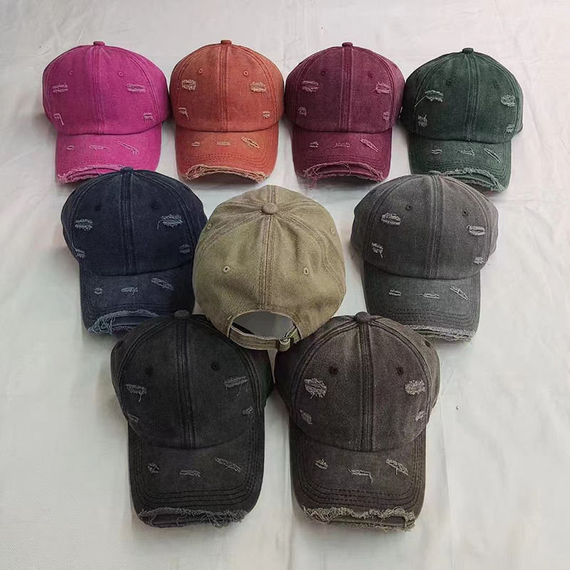 水洗做旧复古破洞鸭舌帽时尚潮流百搭缝线设计光板棒球帽简约百搭