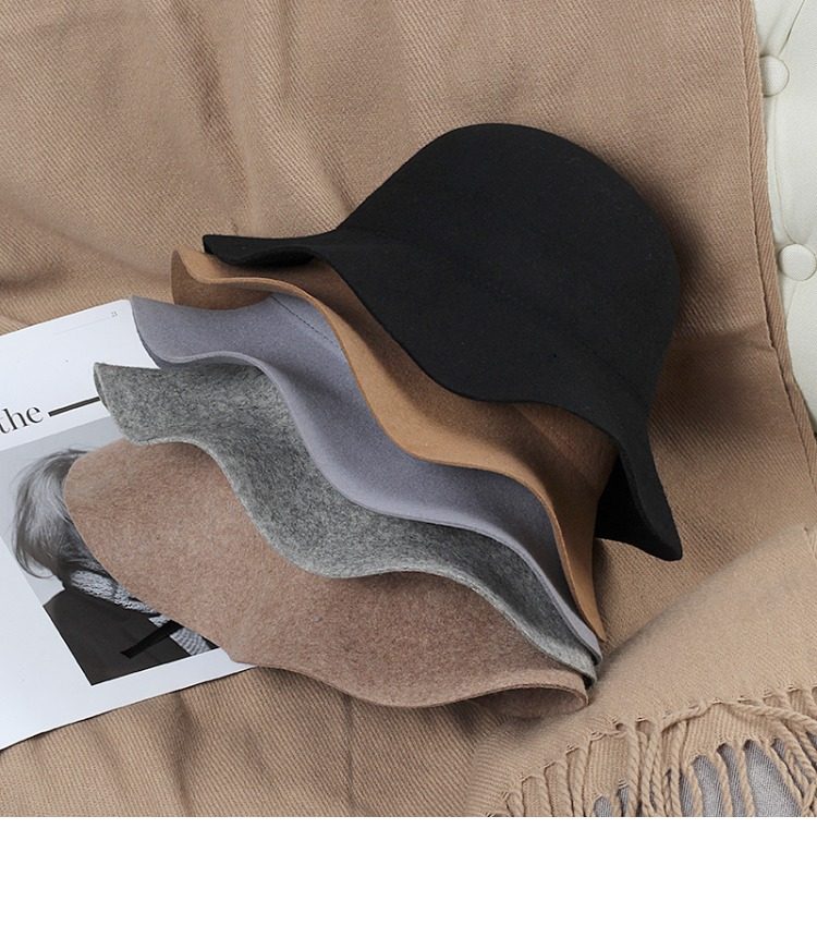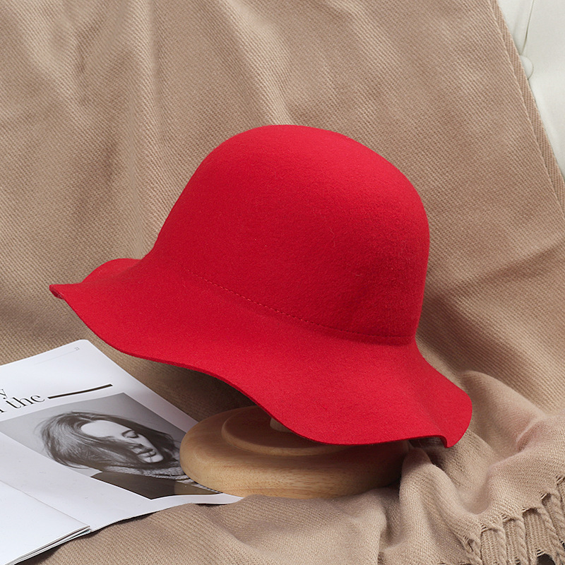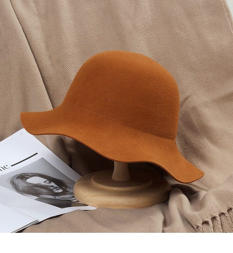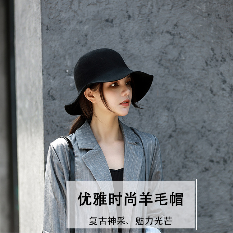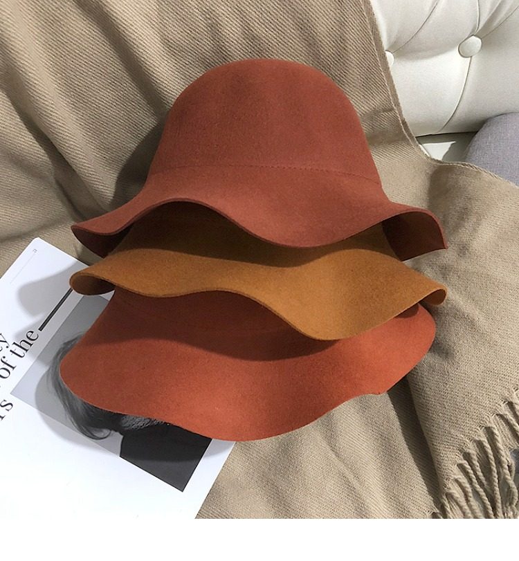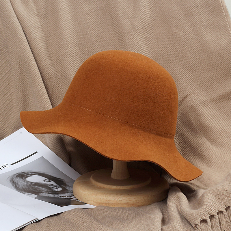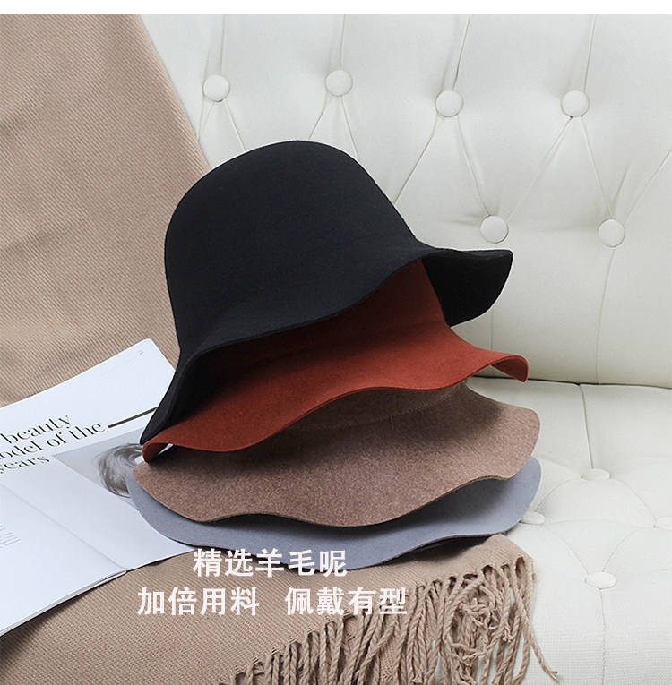 羊毛呢帽子女秋冬波浪卷边英伦复古百搭渔夫帽出游百搭大檐小礼帽