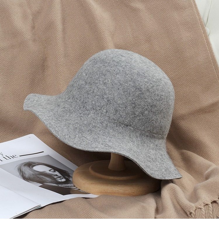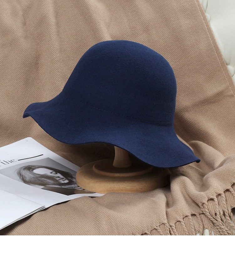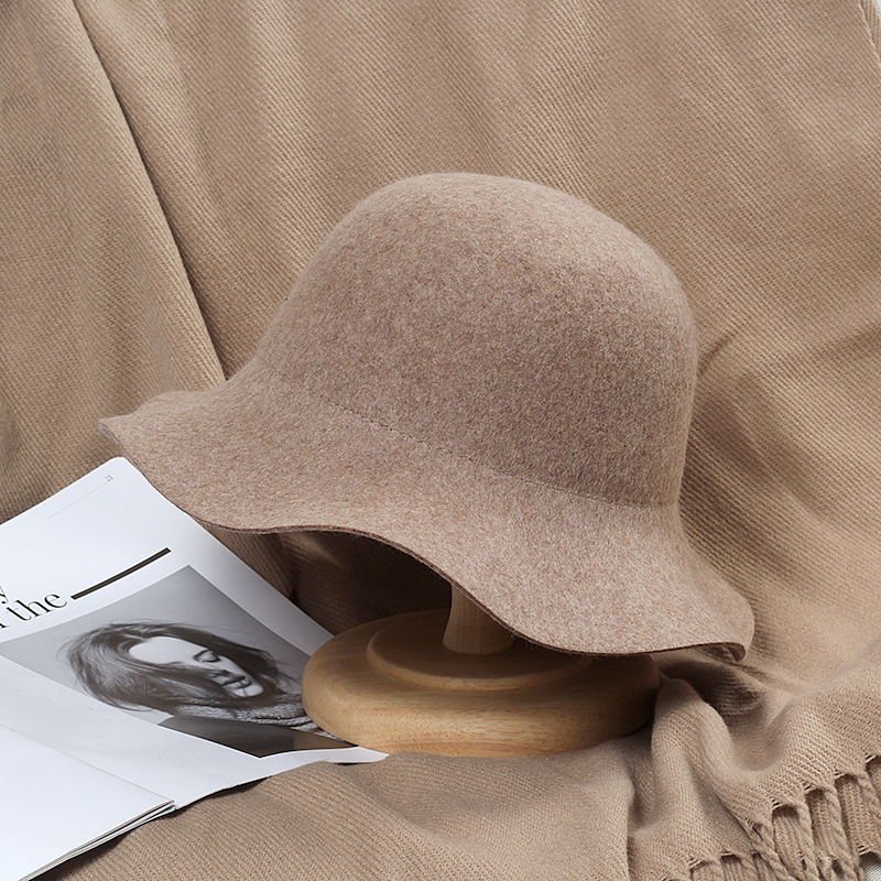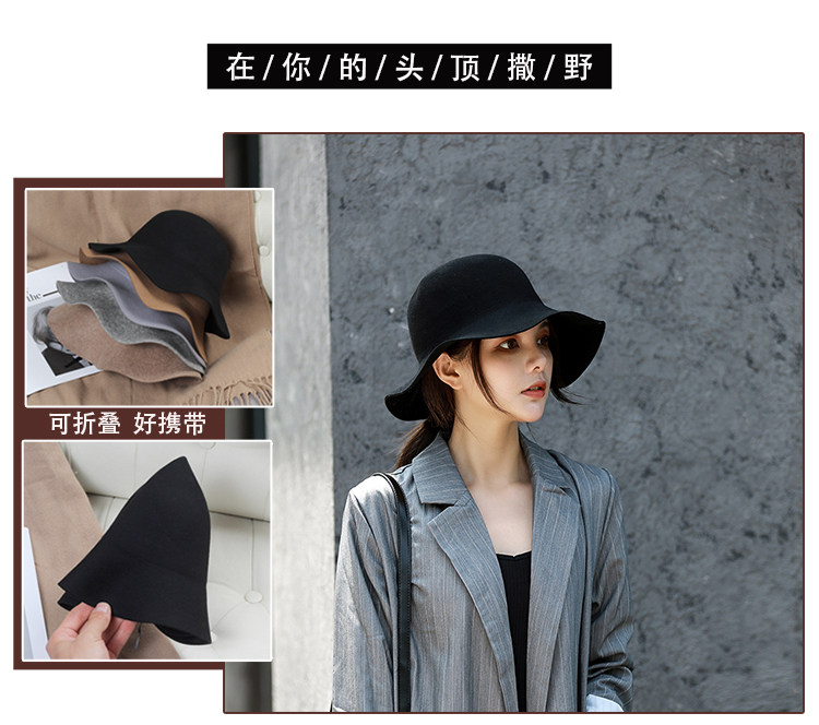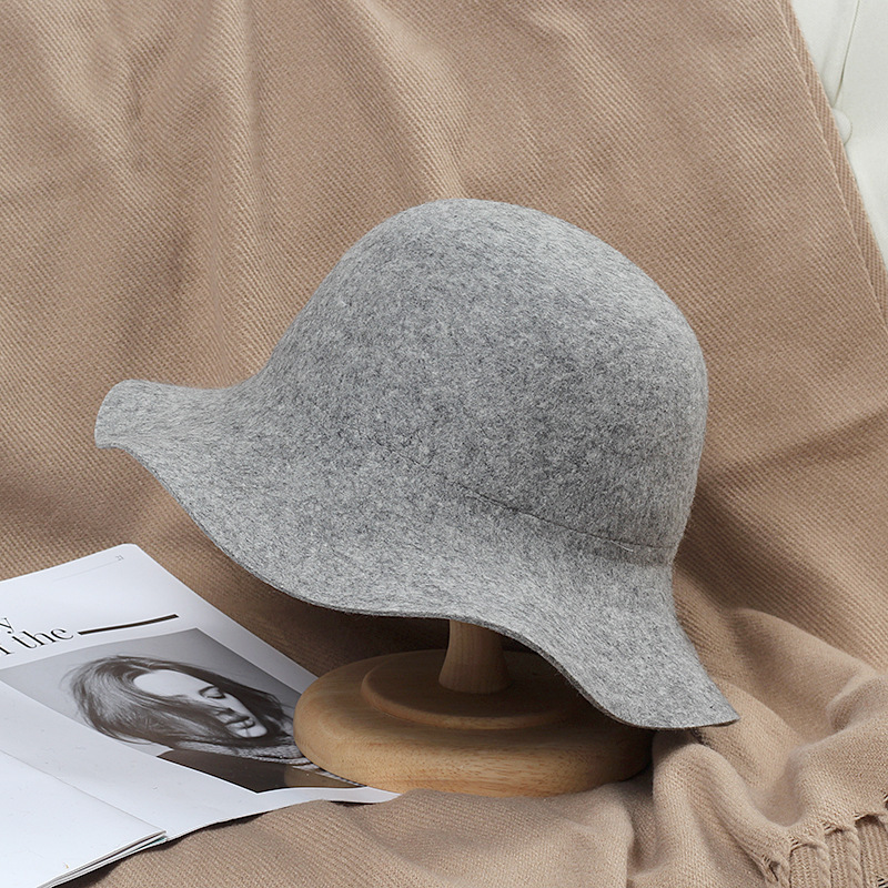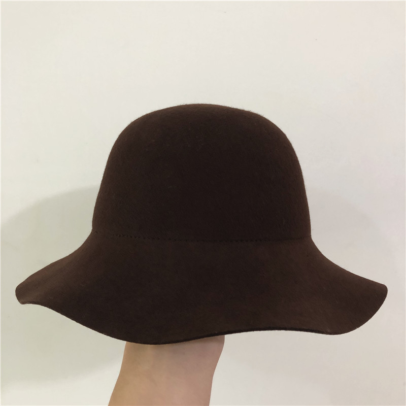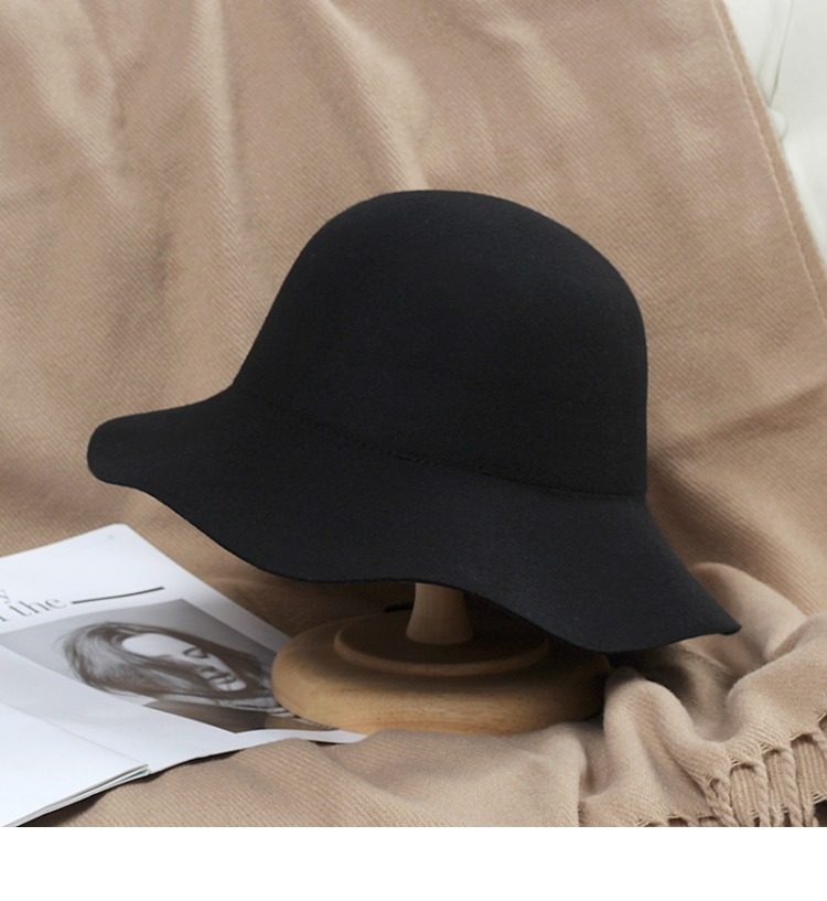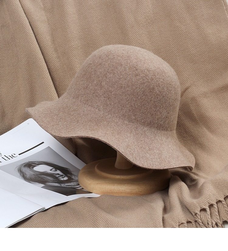 羊毛呢帽子女秋冬波浪卷边英伦复古百搭渔夫帽出游百搭大檐小礼帽