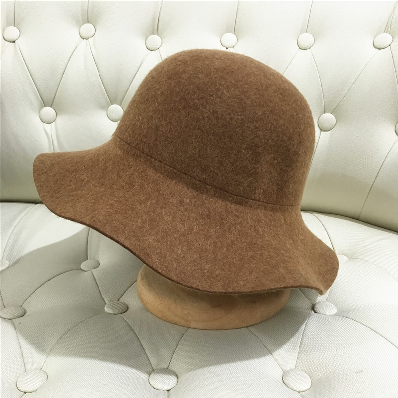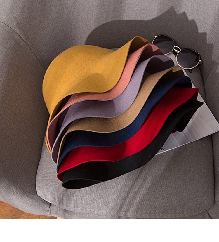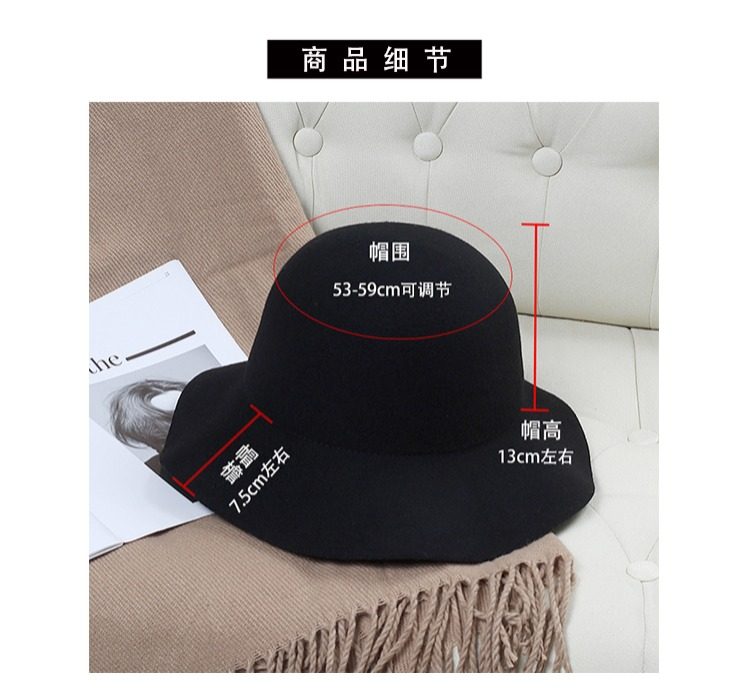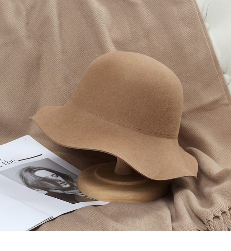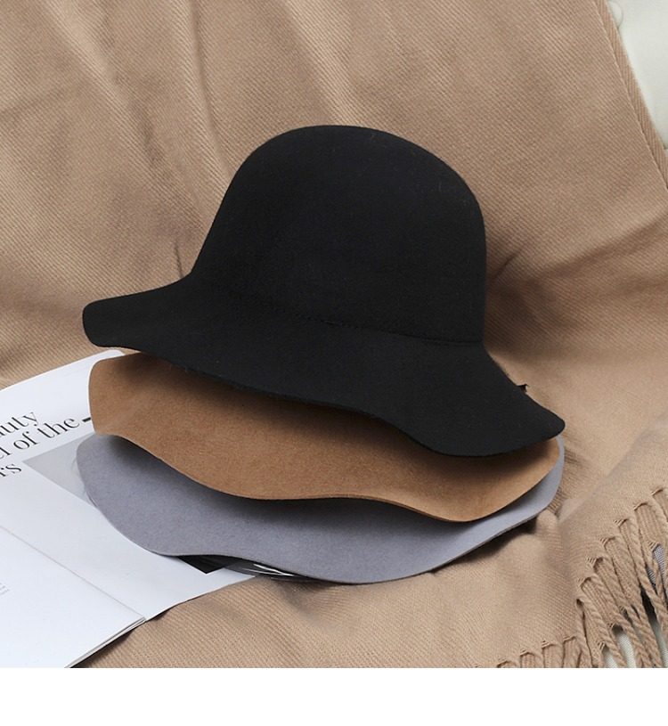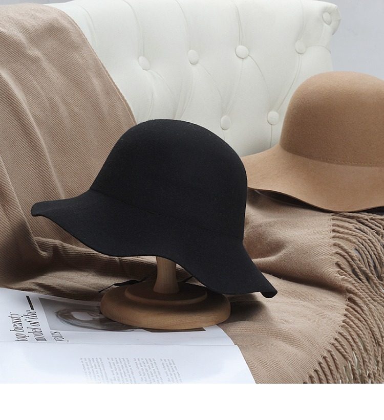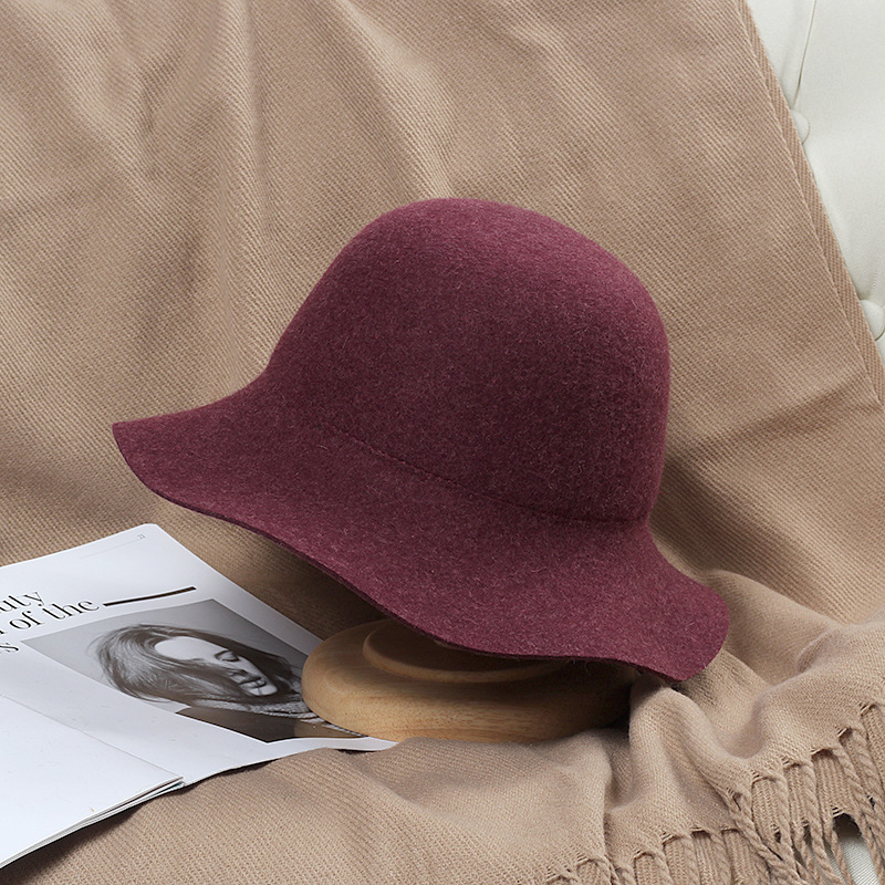 羊毛呢帽子女秋冬波浪卷边英伦复古百搭渔夫帽出游百搭大檐小礼帽
