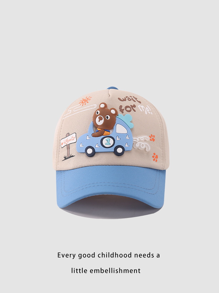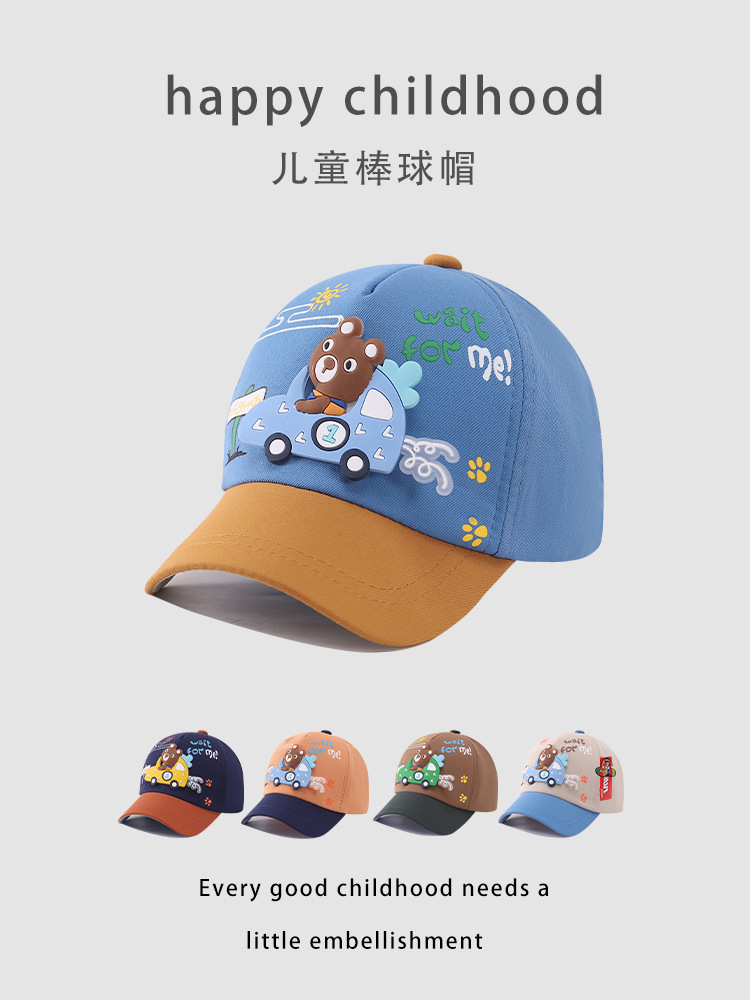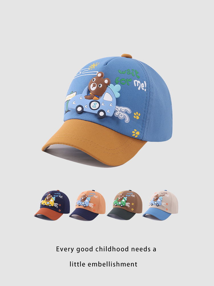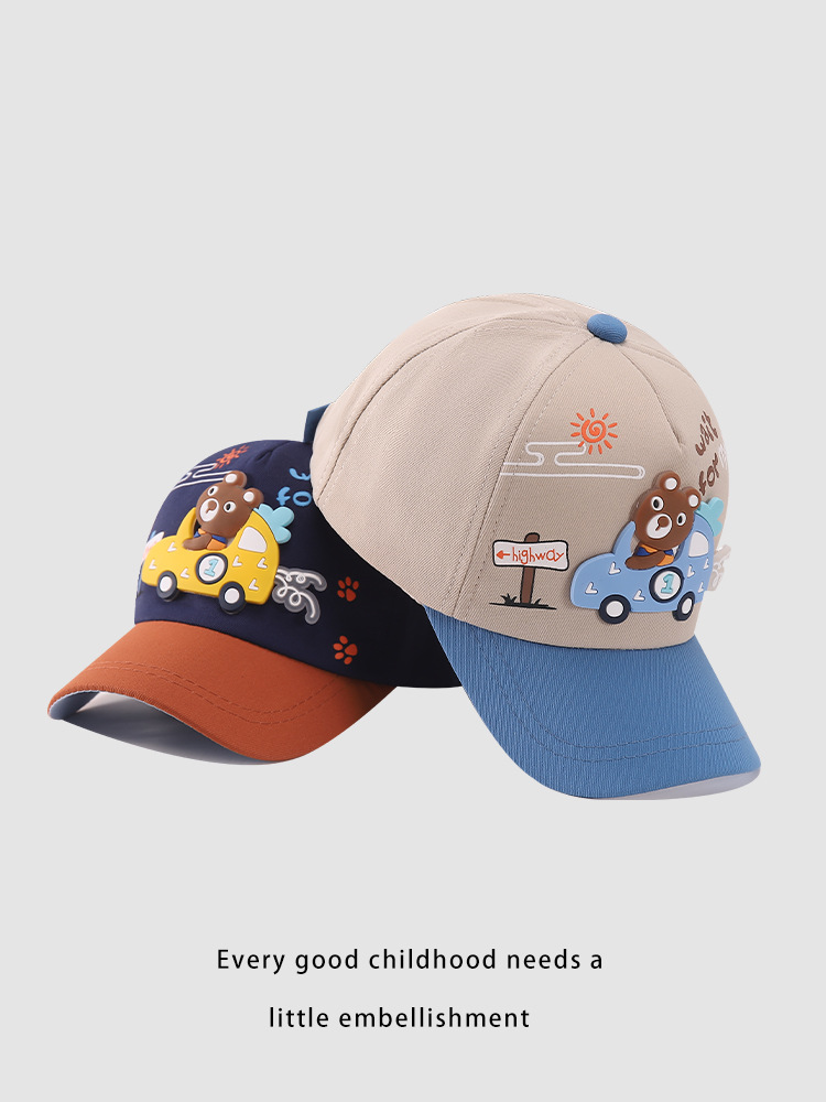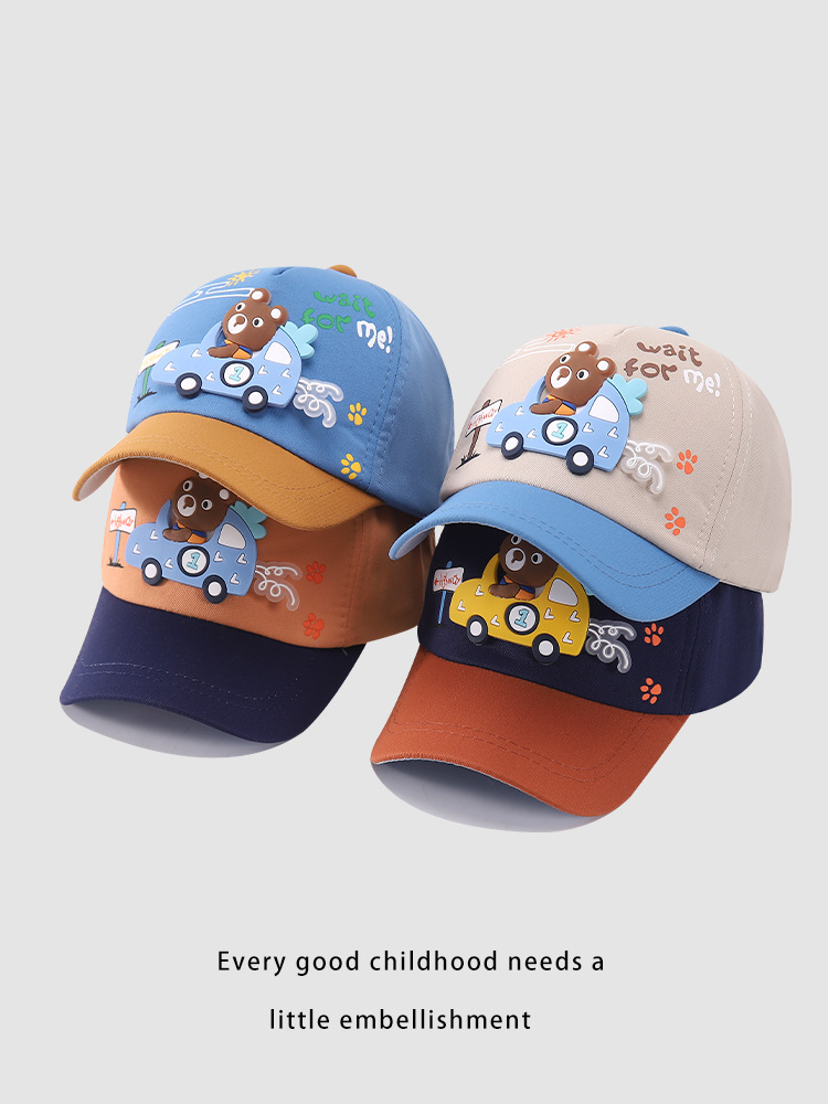 立体汽车小熊鸭舌帽拼色时尚休闲儿童鸭舌帽宝宝棒球帽防晒遮阳帽