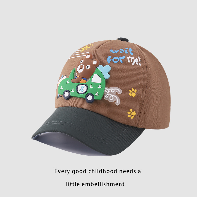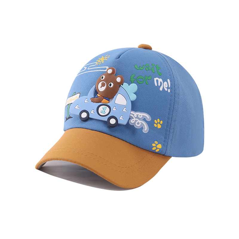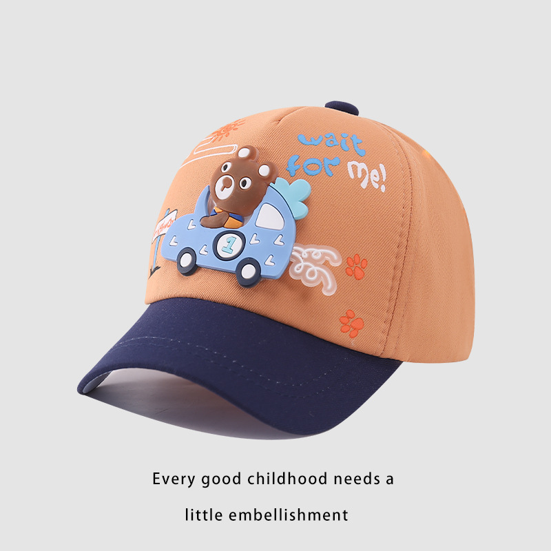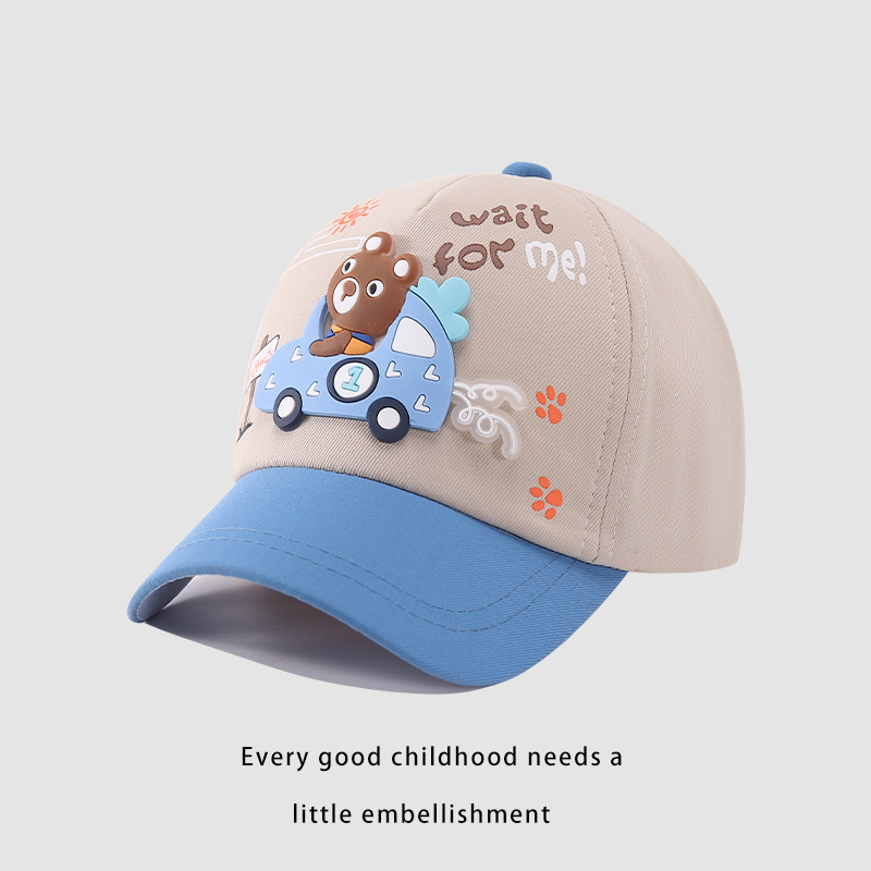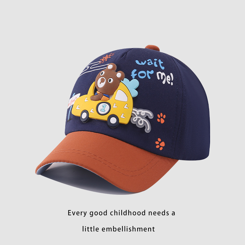 立体汽车小熊鸭舌帽拼色时尚休闲儿童鸭舌帽宝宝棒球帽防晒遮阳帽