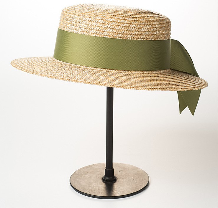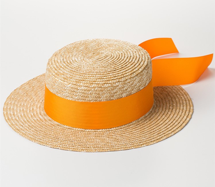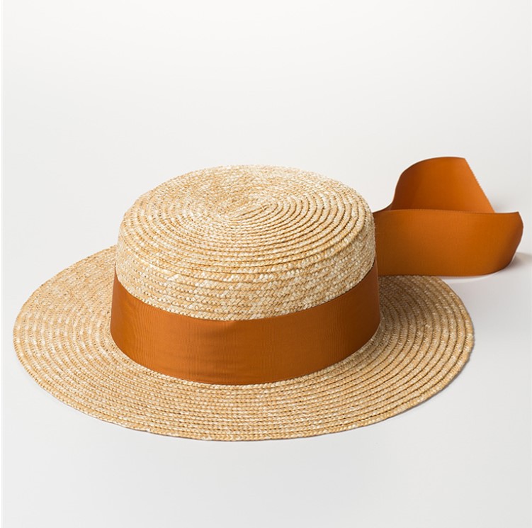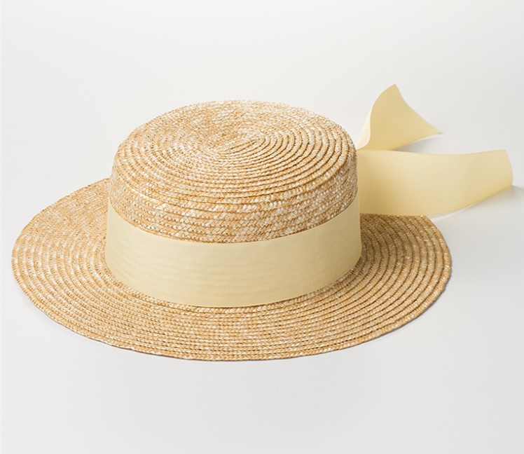 夏季麦秆礼帽天然草帽编织麦草大沿飘带平顶礼帽一级草手工编跨境