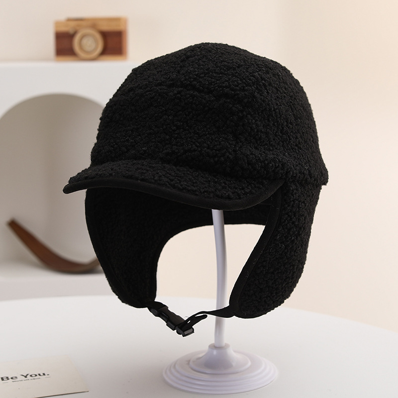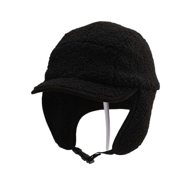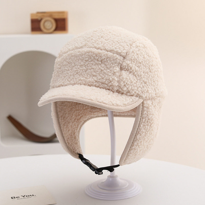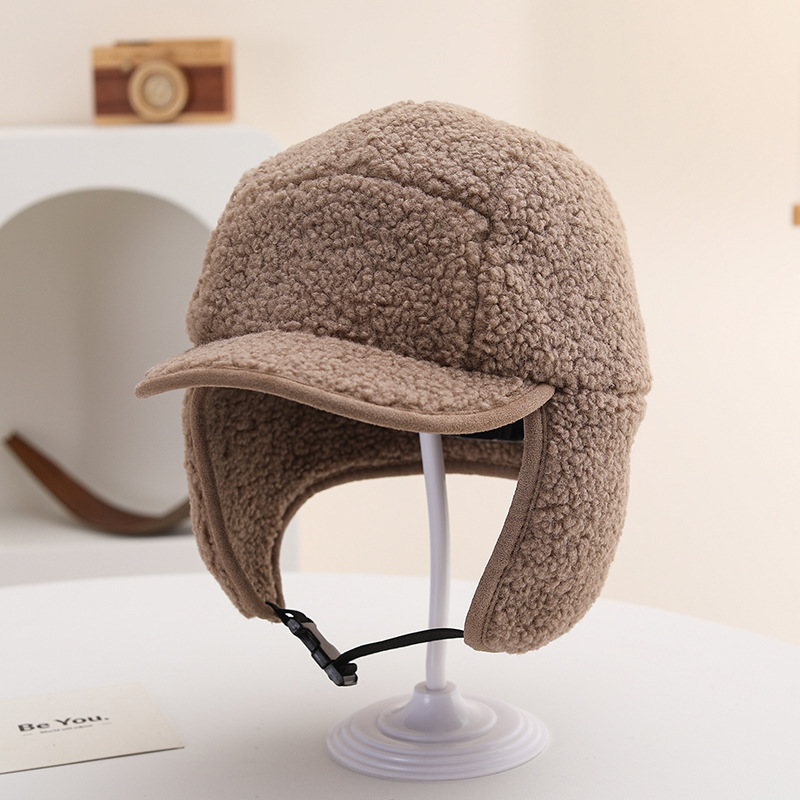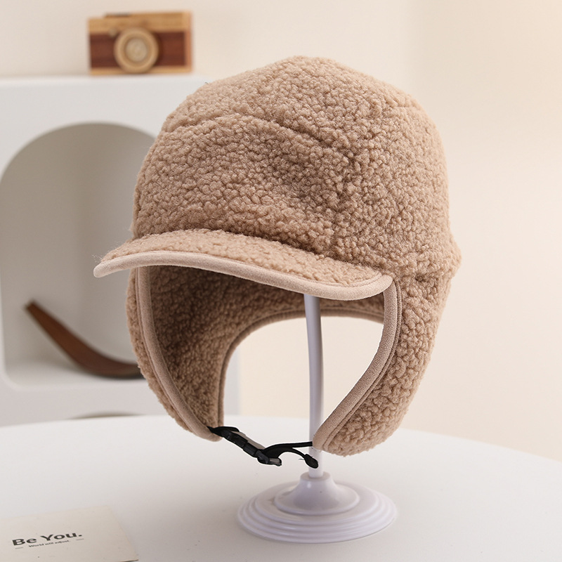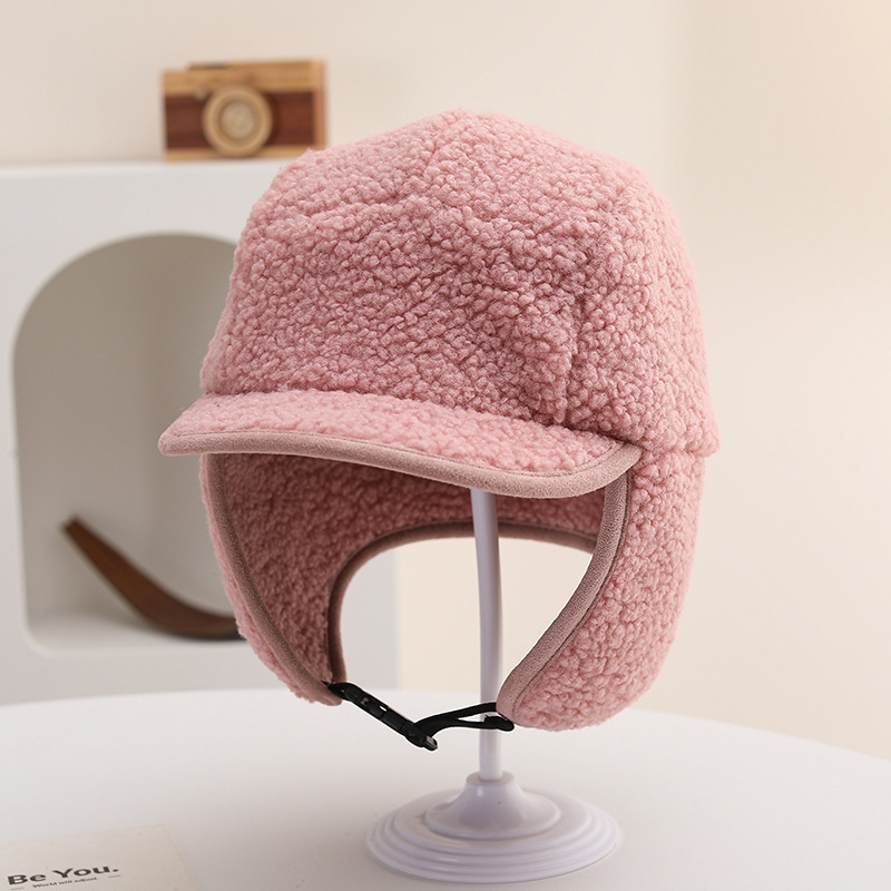 纯色光板摇粒绒保暖儿童时尚护耳渔夫帽仿羊羔绒休闲风潮流设计感