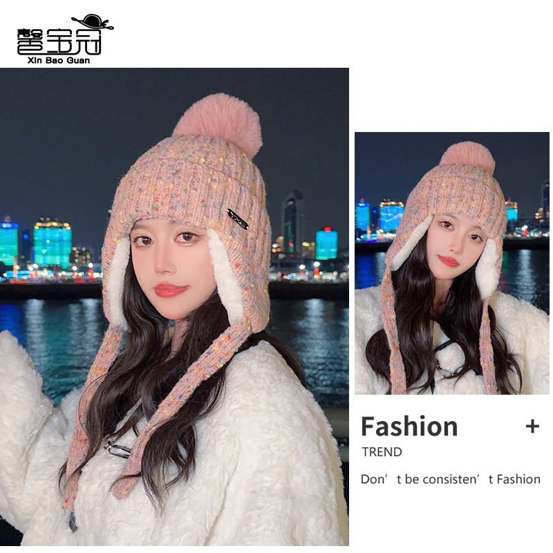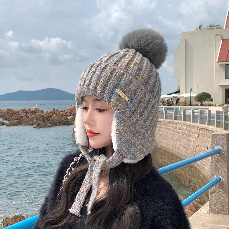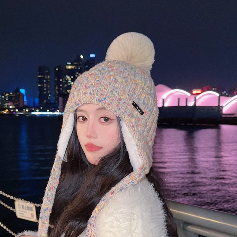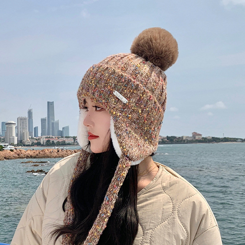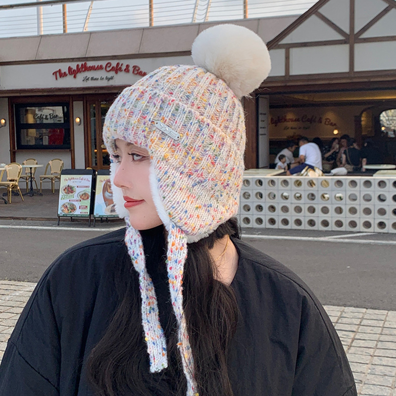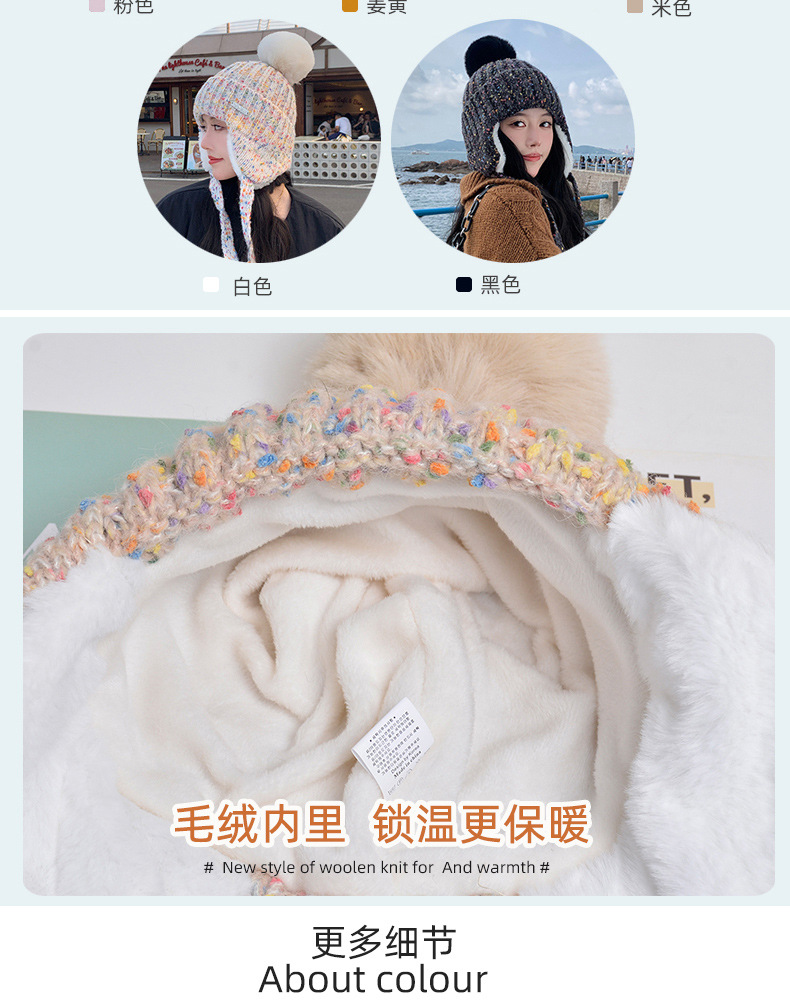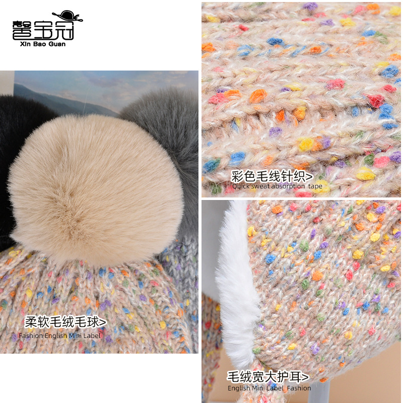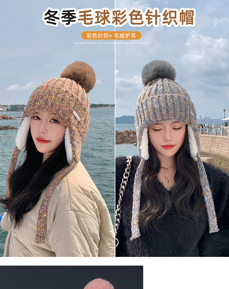 8325新款冬季毛球彩色毛线帽防寒护耳针织帽韩版毛绒保暖帽子女潮