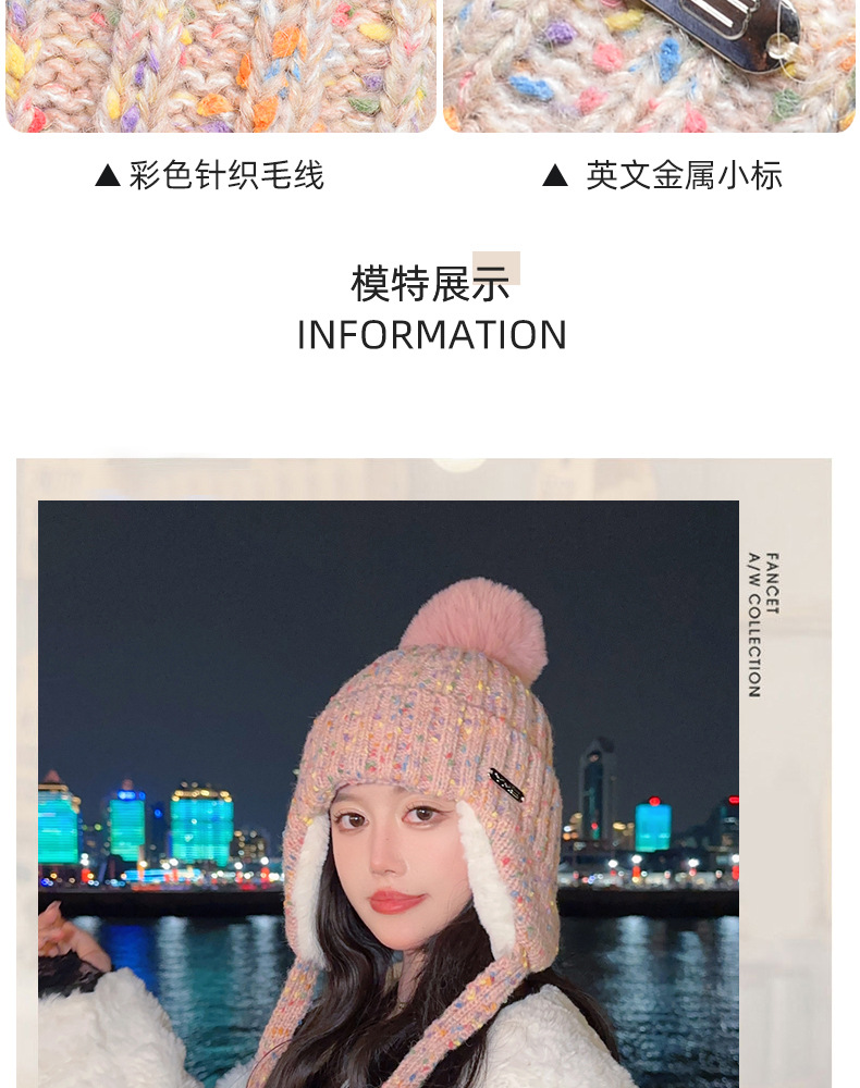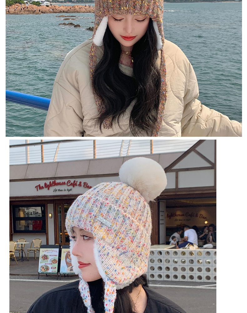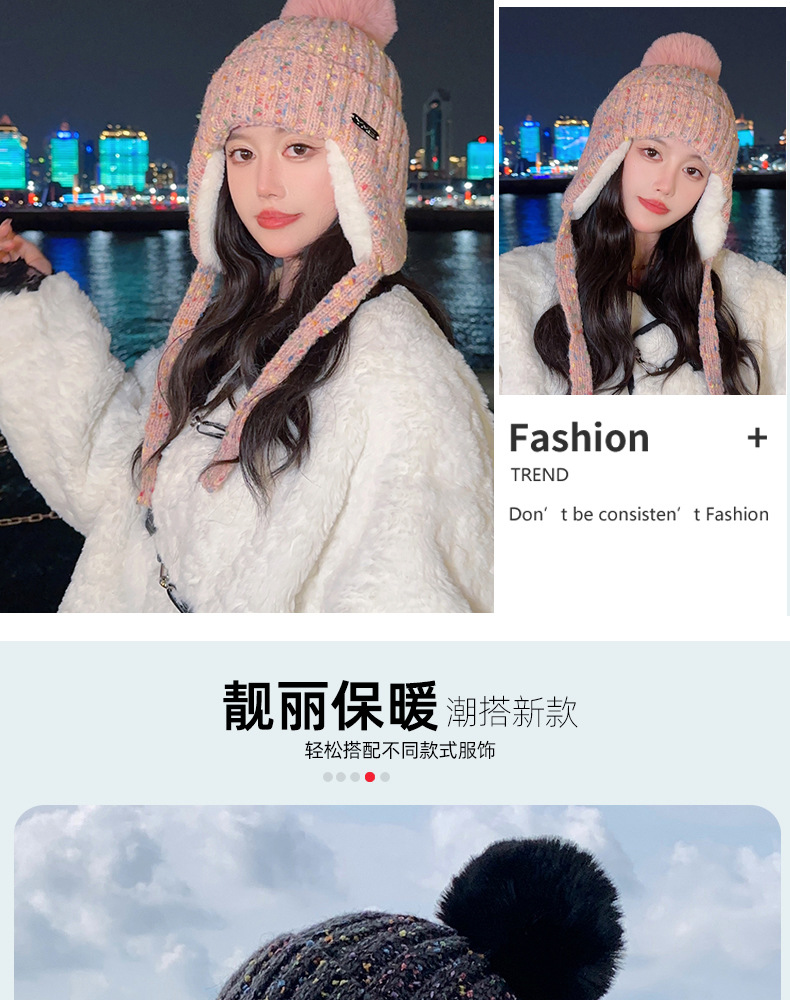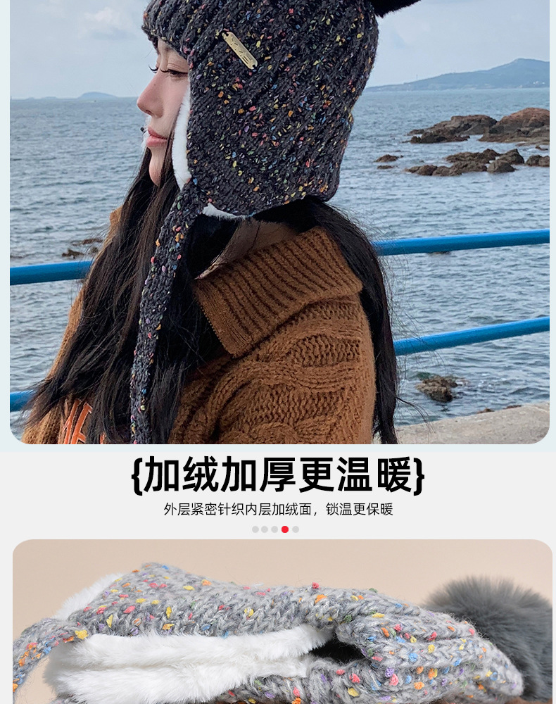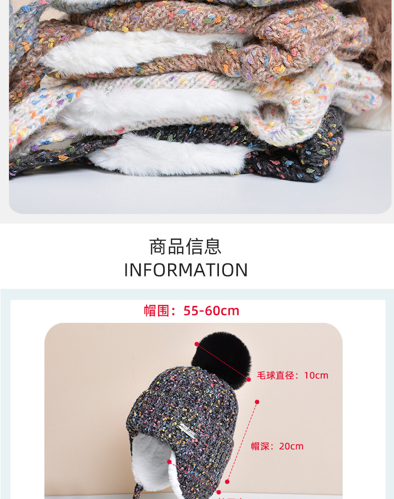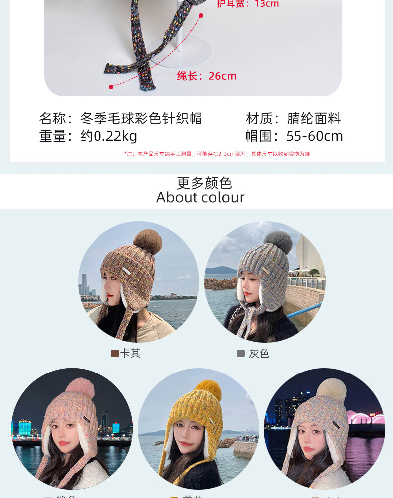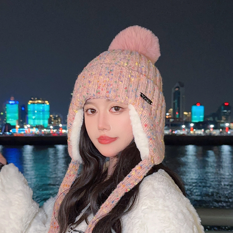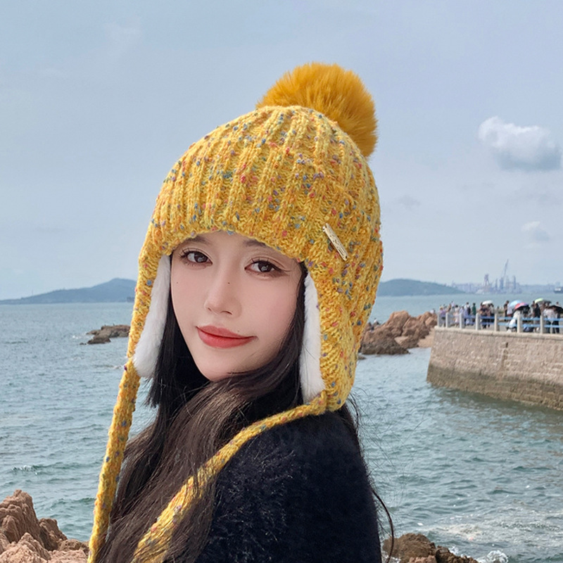 8325新款冬季毛球彩色毛线帽防寒护耳针织帽韩版毛绒保暖帽子女潮