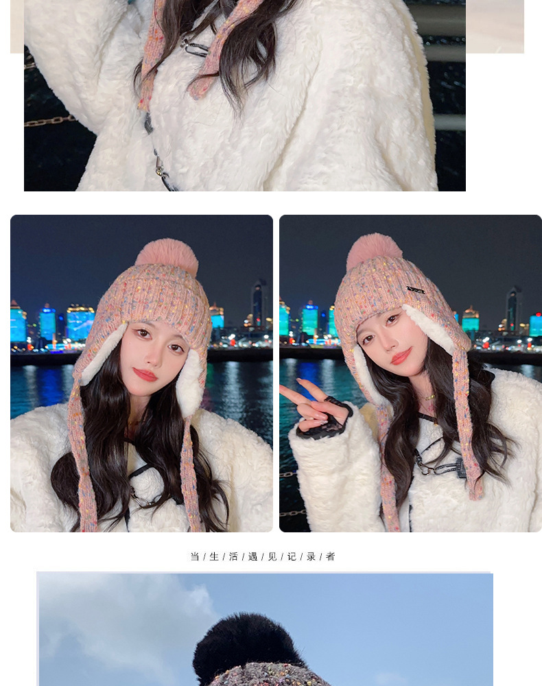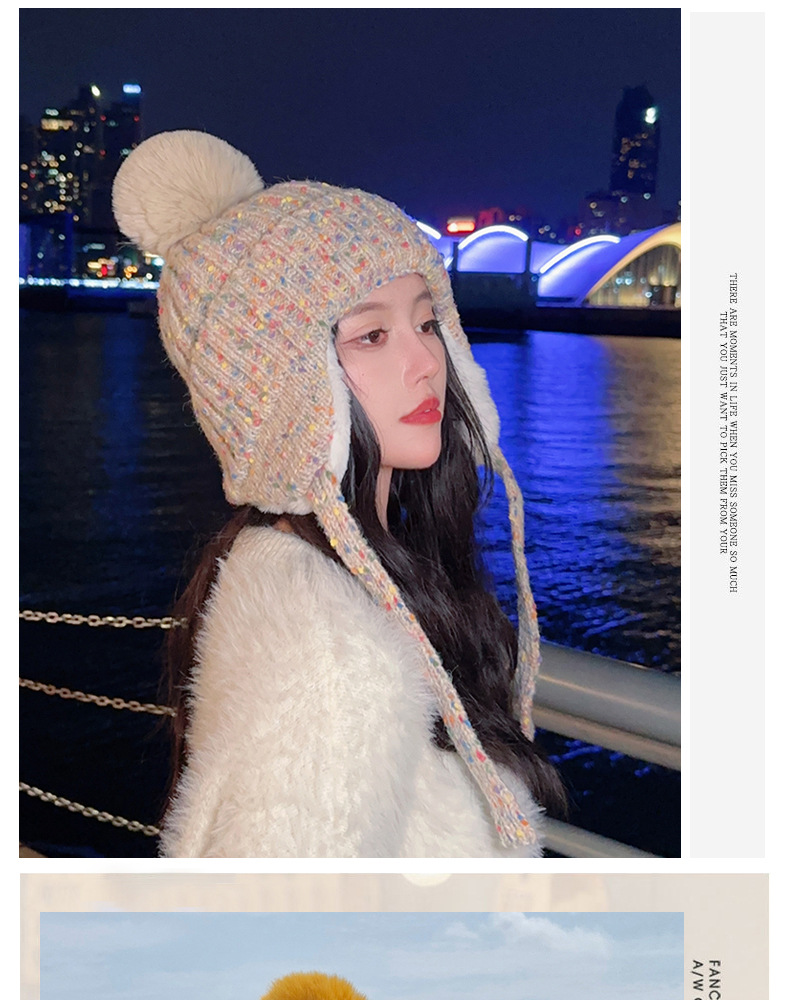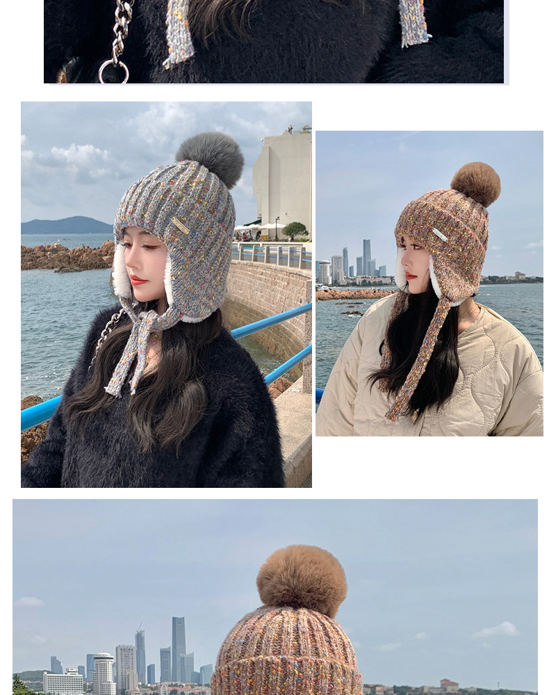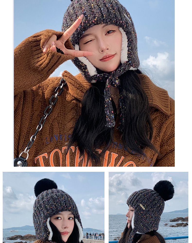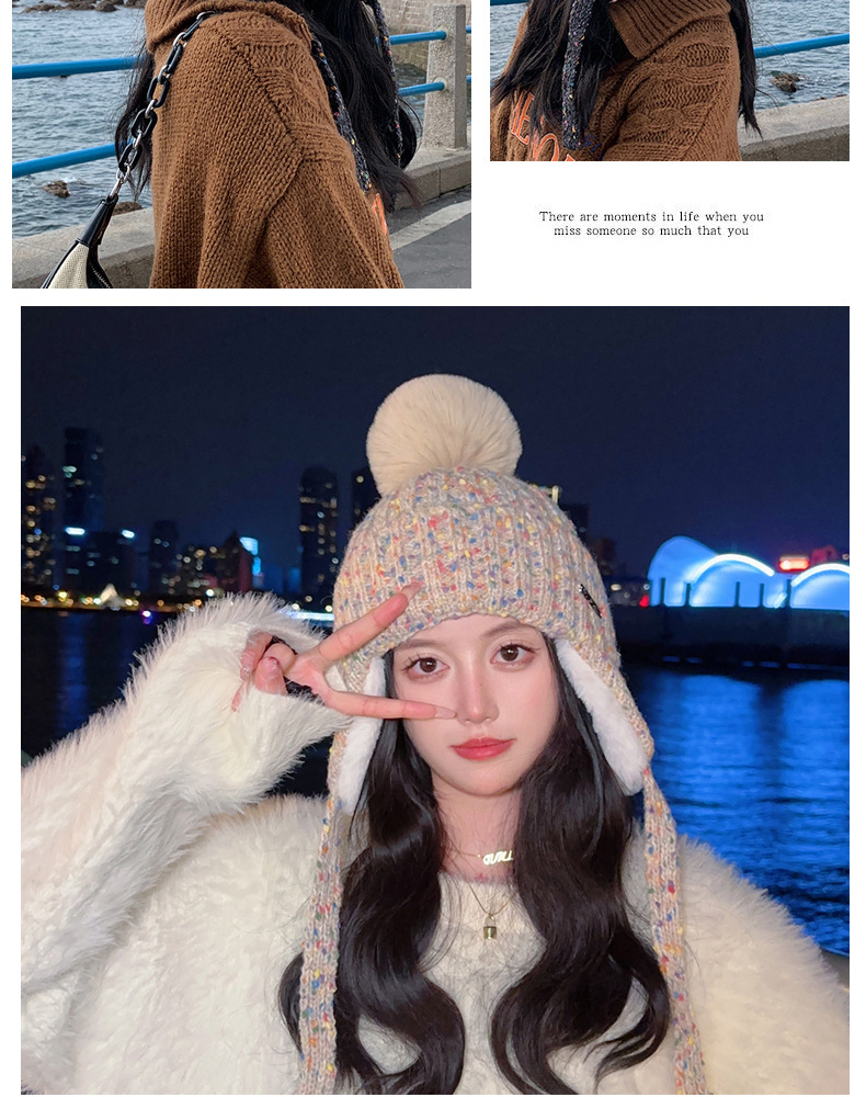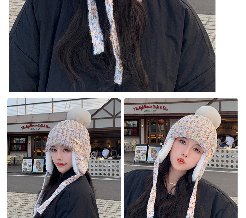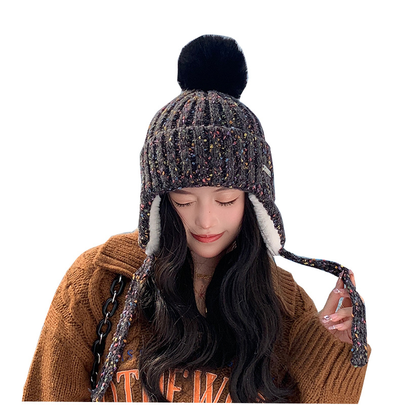 8325新款冬季毛球彩色毛线帽防寒护耳针织帽韩版毛绒保暖帽子女潮