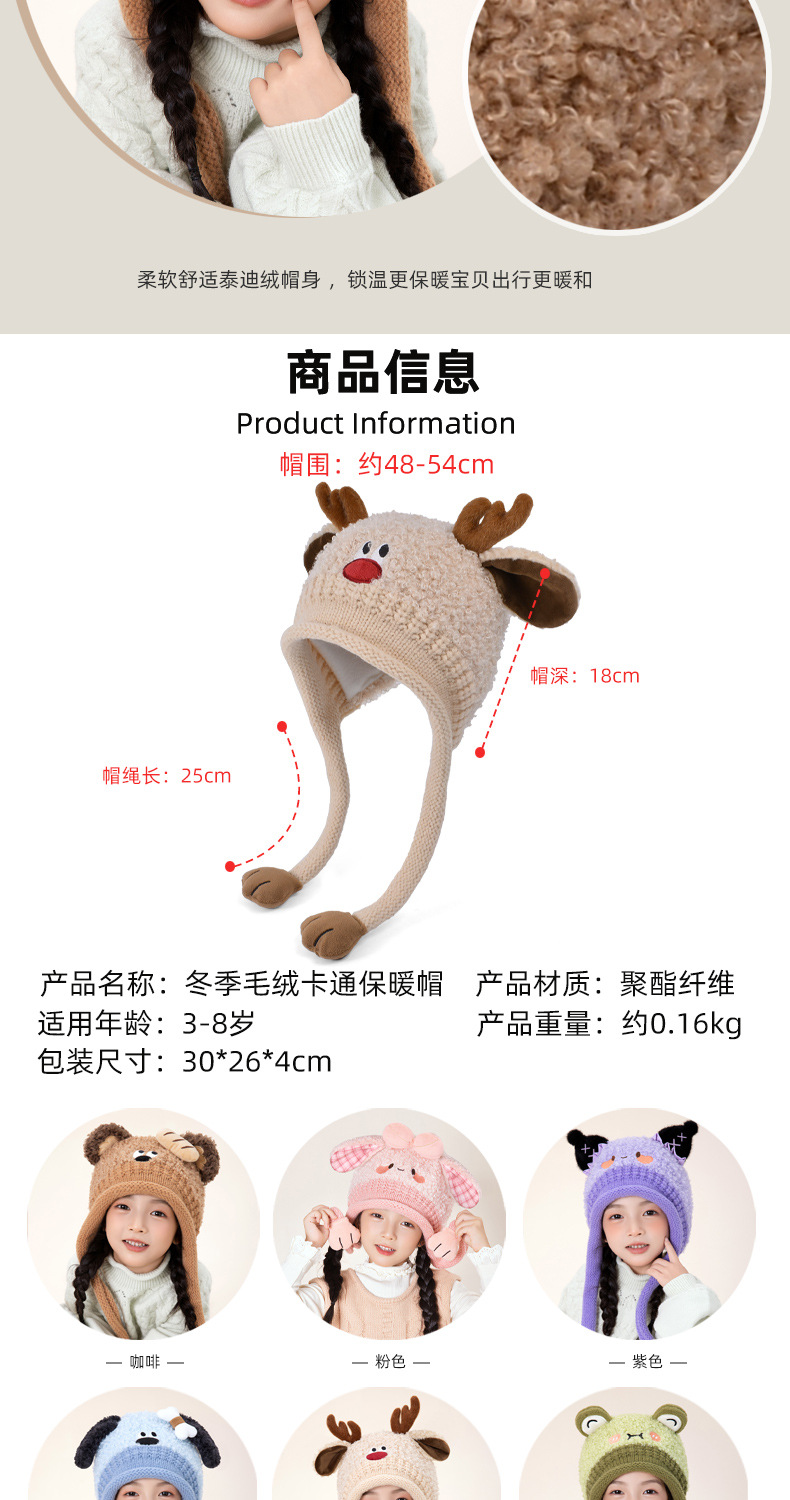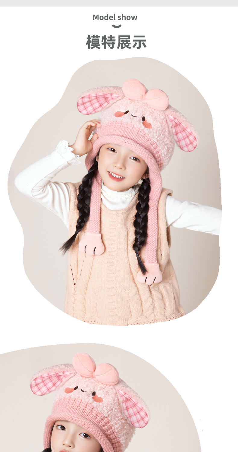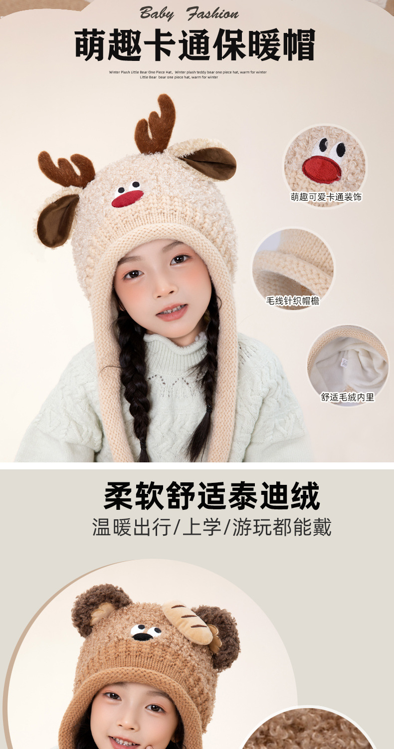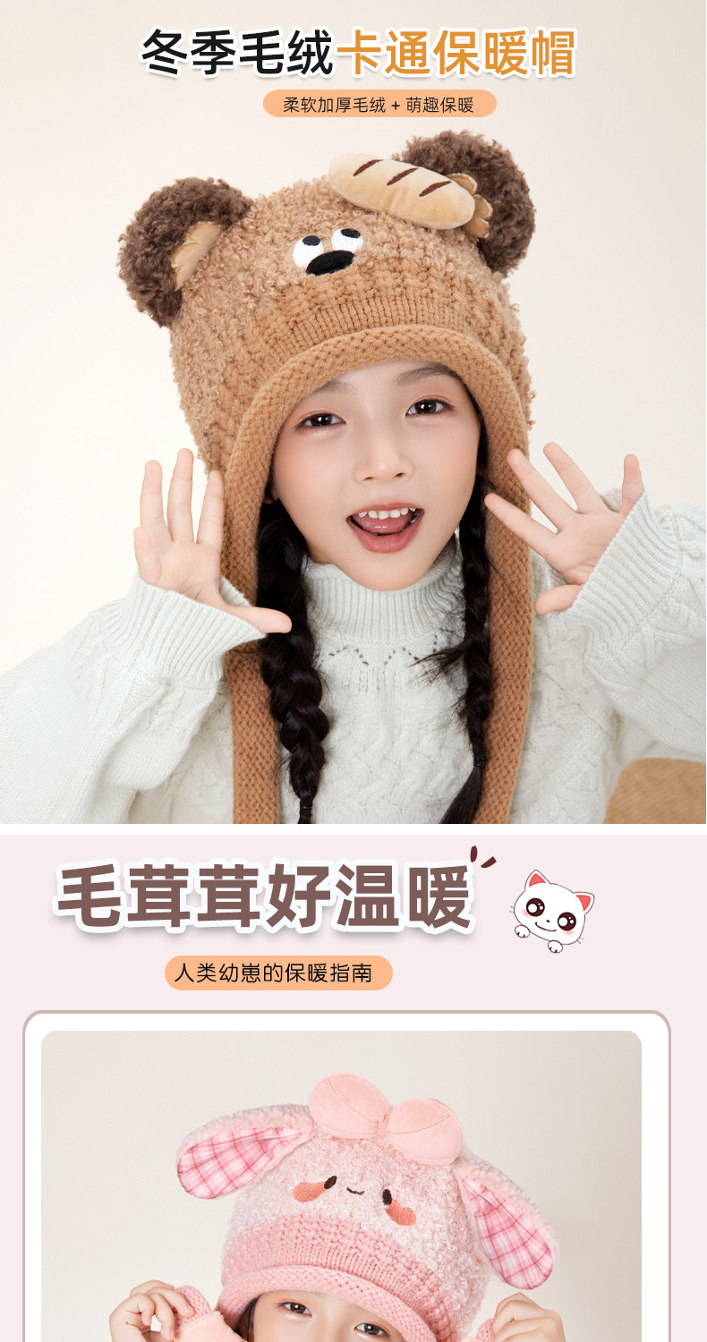 儿童帽子女孩冬季加绒护耳包头针织帽宝宝卡通可爱毛绒保暖毛线帽