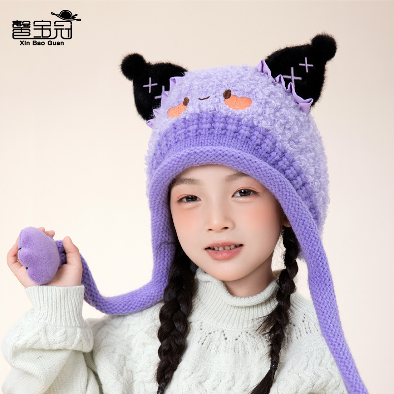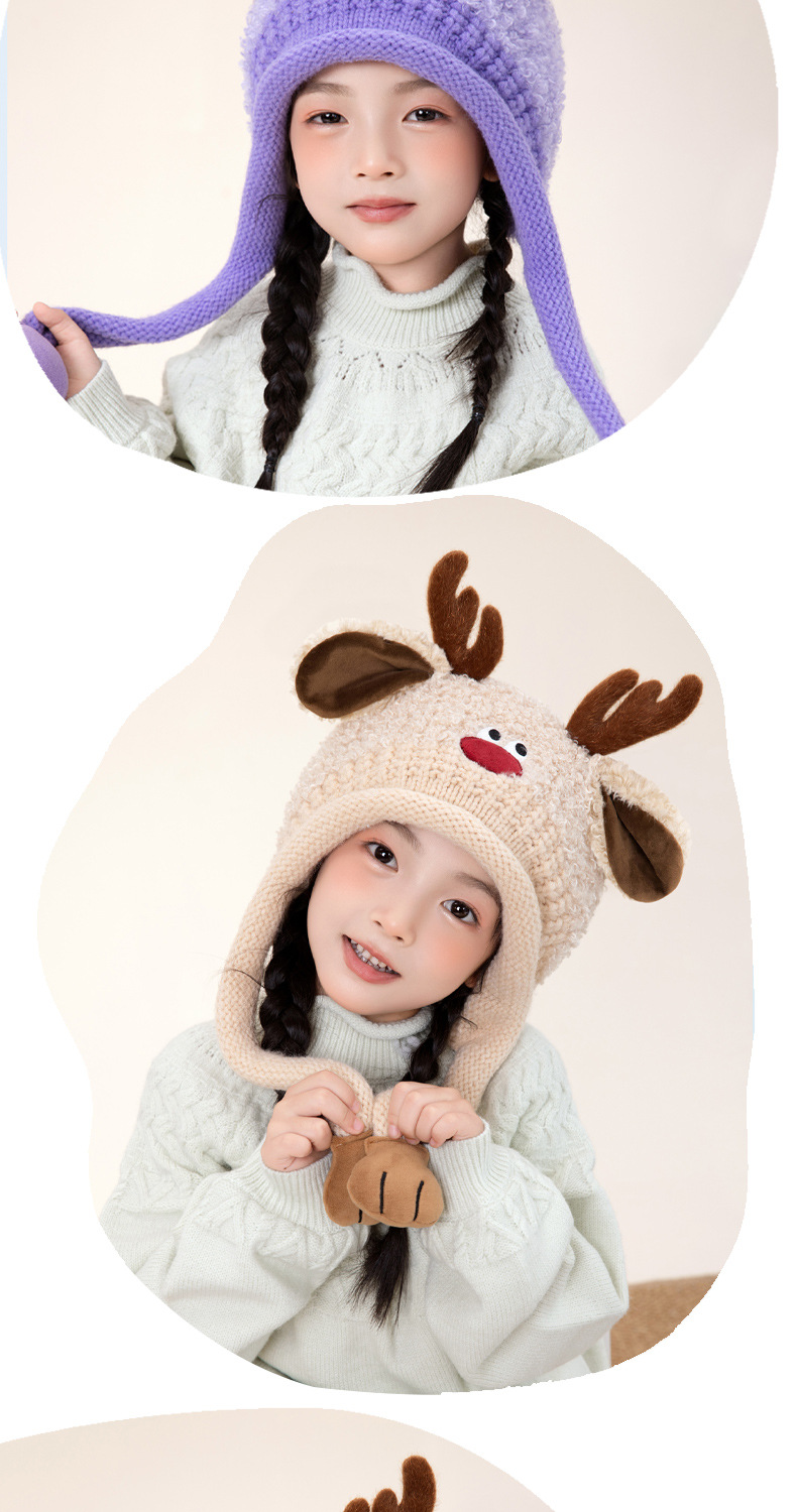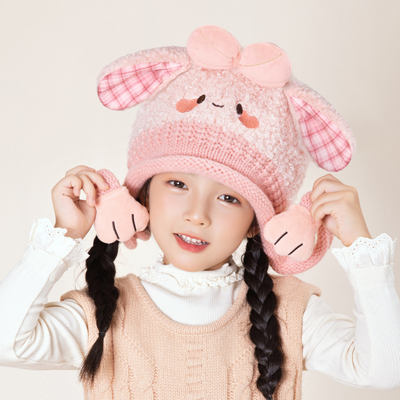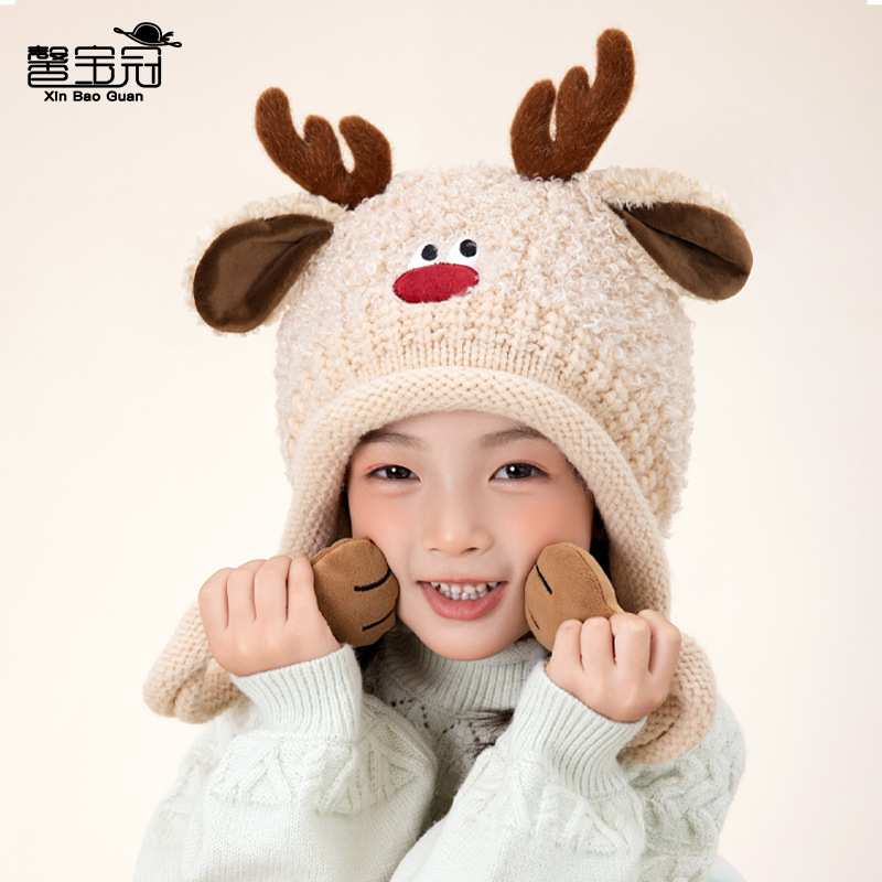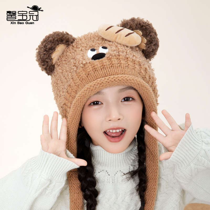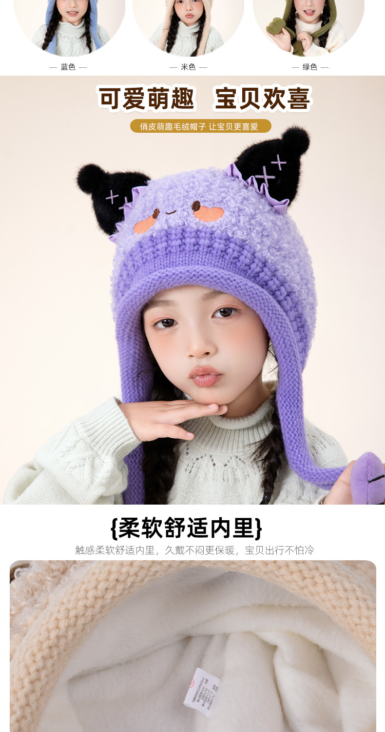 儿童帽子女孩冬季加绒护耳包头针织帽宝宝卡通可爱毛绒保暖毛线帽