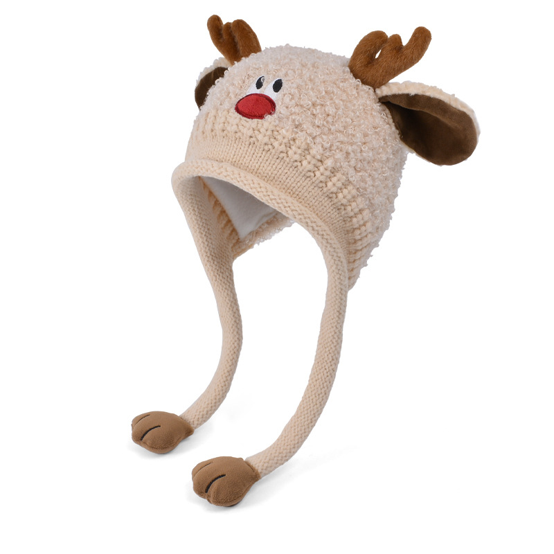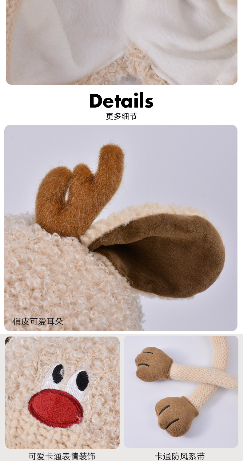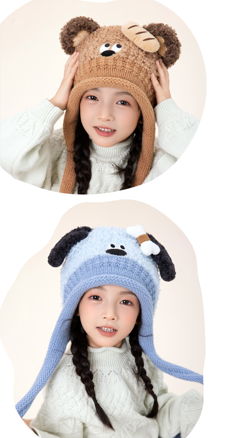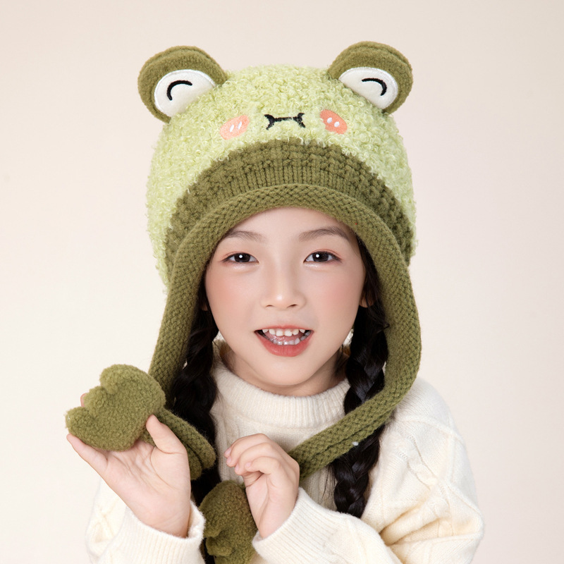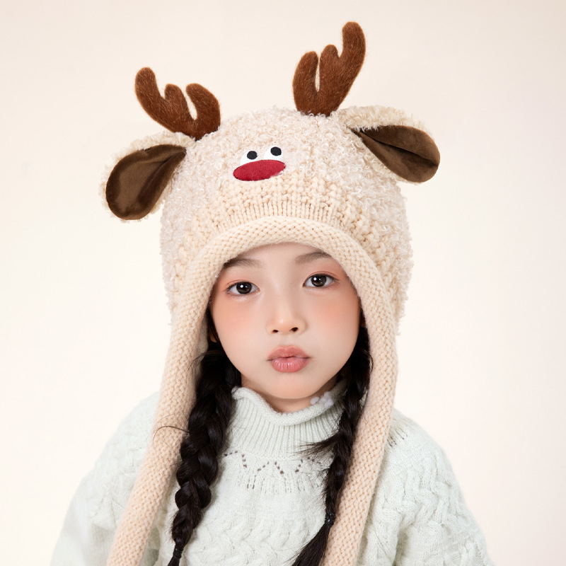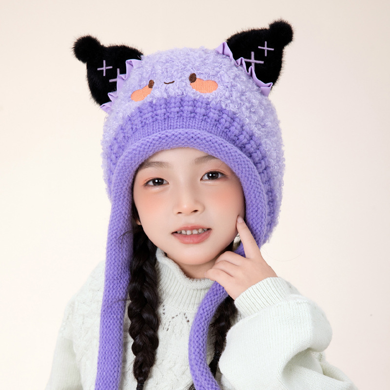 儿童帽子女孩冬季加绒护耳包头针织帽宝宝卡通可爱毛绒保暖毛线帽