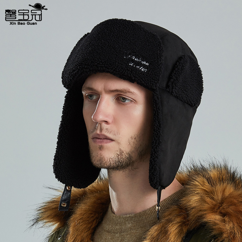 9130跨境帽子韩版男款拼接羊羔绒加厚雷锋帽冬季滑雪防风保暖帽女